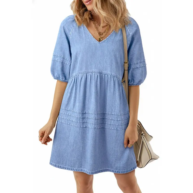 ·Fabric: Dokotoo casual summer denim dresses is made with high-quality and skin-friendly fabric. It offers a soft, lightweight, and comfortable wearing experience. The denim mini dress can show off your legs, the puff sleeves add a touch of whimsy. Keep you trendy and eye-catching at any time and anywhere
