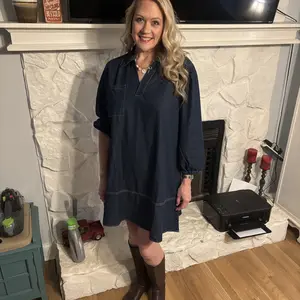 ·Design: This denim dress features a flattering V-neckline and puff sleeves with 3/4 length, offering a chic and trendy look that suits any fashion-forward wardrobe.