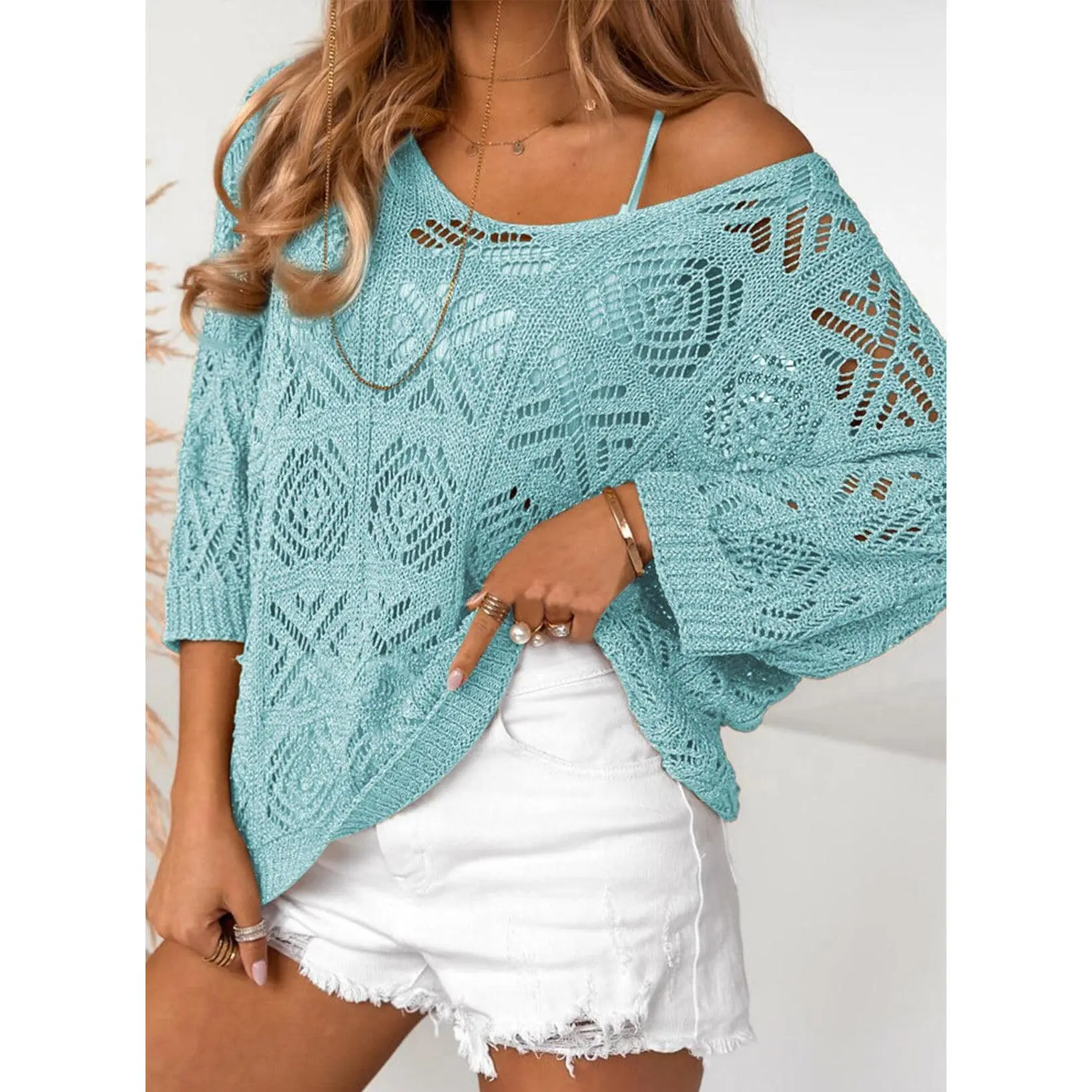I love this top by Dokotoo... it is the perfect crochet top for summer when I want to wear something other than leggings and an tshirt, but still be cool when it's so hot. This blue color, Mist Blue, is stunning! I love the fact that I can wear it off the shoulder of normal neckline. I ordered a M according to the size chart and it fits true to size. 5/5 stars!