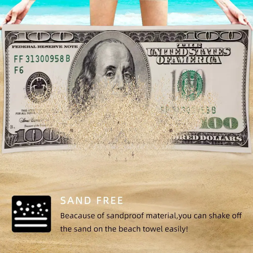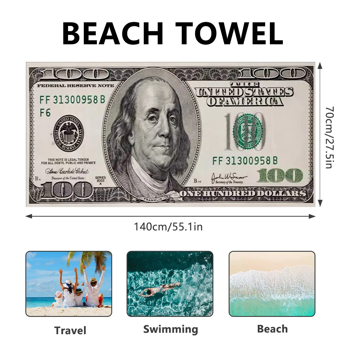 Dollar Pattern Microfiber Beach Towel, Bathroom Bath Towel, Super Absorbent, Soft Skin-Friendly Fabric, Sand Free Material, Lightweight Quick Dry Towel for Beach Travel Pool Gift for Friends
