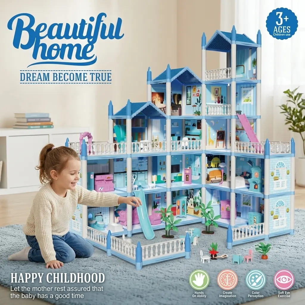 ·The toy house has 16 different rooms and outdoor spaces, including bedrooms, living rooms, kitchens, restaurants, terraces, etc. You will start a happy and life in this princess villa.