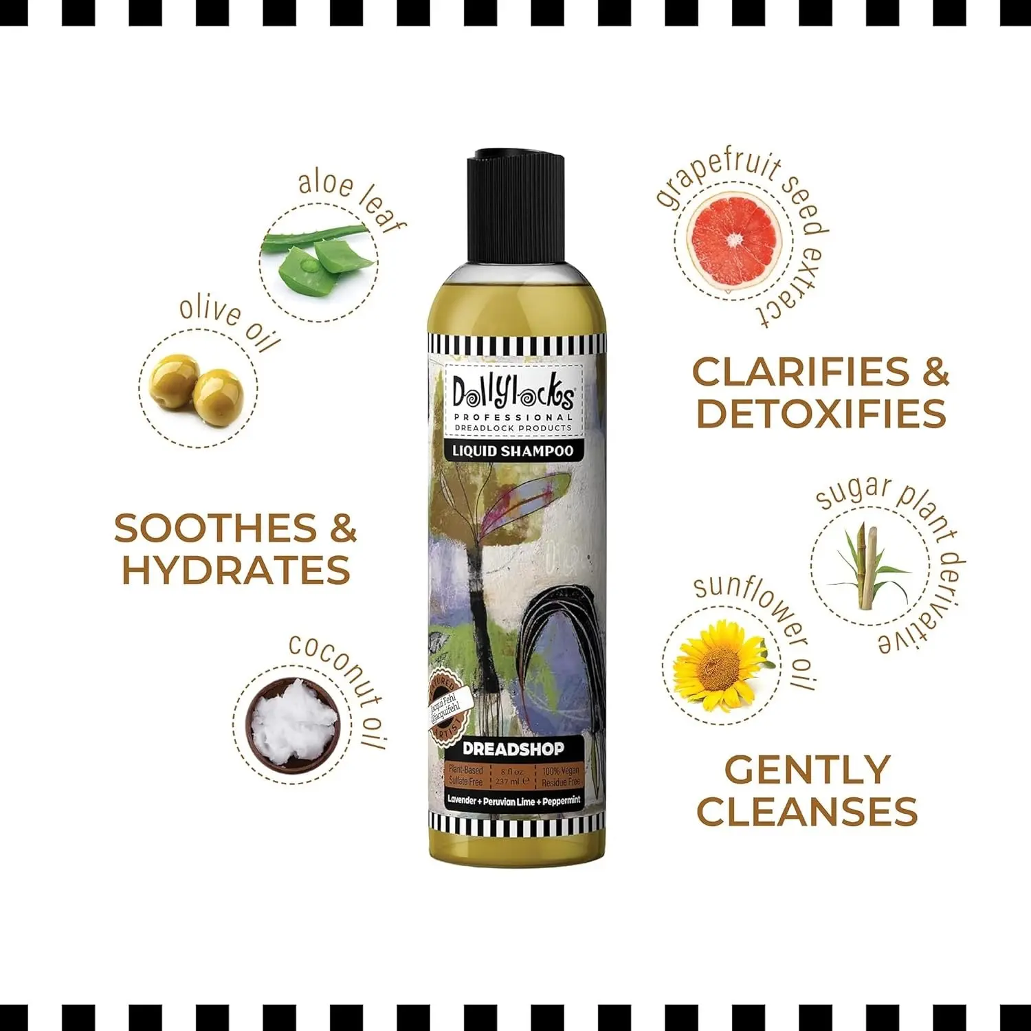 A lightweight pH-balanced clarifying shampoo gently cleanses your scalp and hair, removing buildup, impurities, and excess oil. Rich in essential fatty acids and soothing plant extracts, keeping your dreadlocks squeaky clean, healthy, and tight without stripping hair or leaving residue.