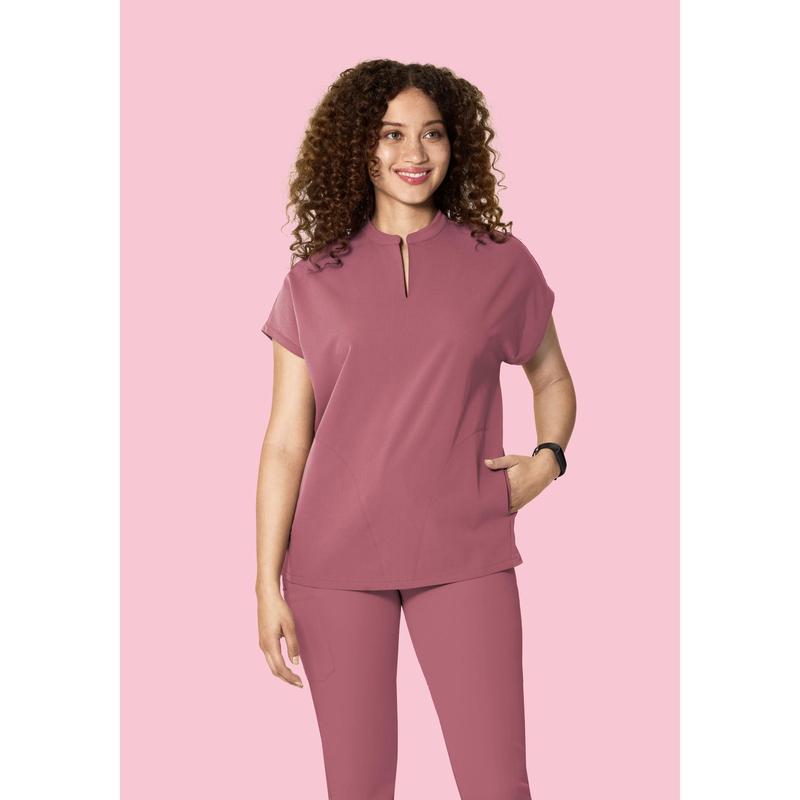 A versatile mandarin dolman scrub top with 4 pockets.