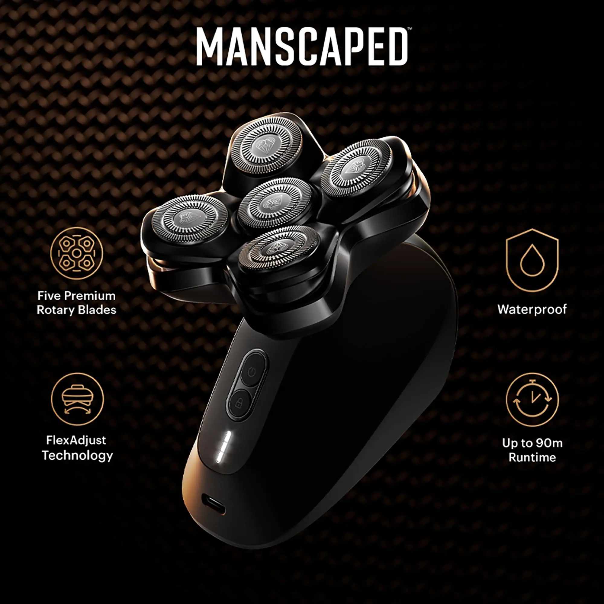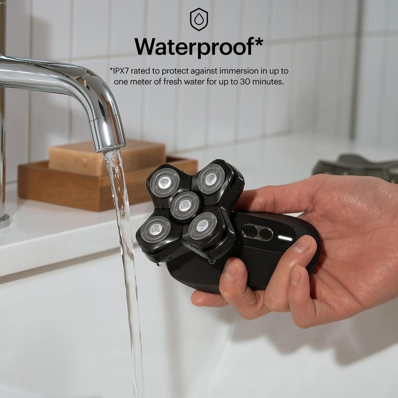 ·COMFORTABLE GLIDE: Five stainless-steel SkinSafe rotary blade heads float over bumps and curves providing a .10 mm smooth shave. With FlexAdjust technology, each blade stays in close contact with the scalp. *SkinSafe Technology does not guarantee cut protection.