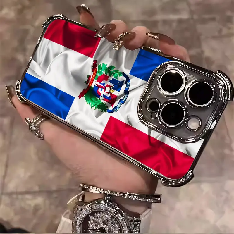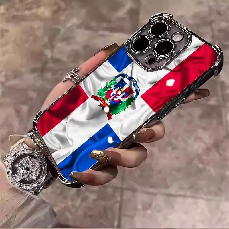 Dominican Pattern Red White Blue Creative Collage Design Suitable for Aesthetic Electroplated TPU Casing For iphone 17 16 15 14 13 12 11 X XS PRO PLUS MAX AIR Samsung S25 S24 S23 Four Corners Anti-Fall Transparent Casual Soft Silicone Phone Cases L1804