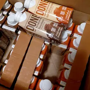The package arrived to me bused and 3 of the chocolate drinks broken and spilled everywhere. It was a whole mess. I like the taste of it though.