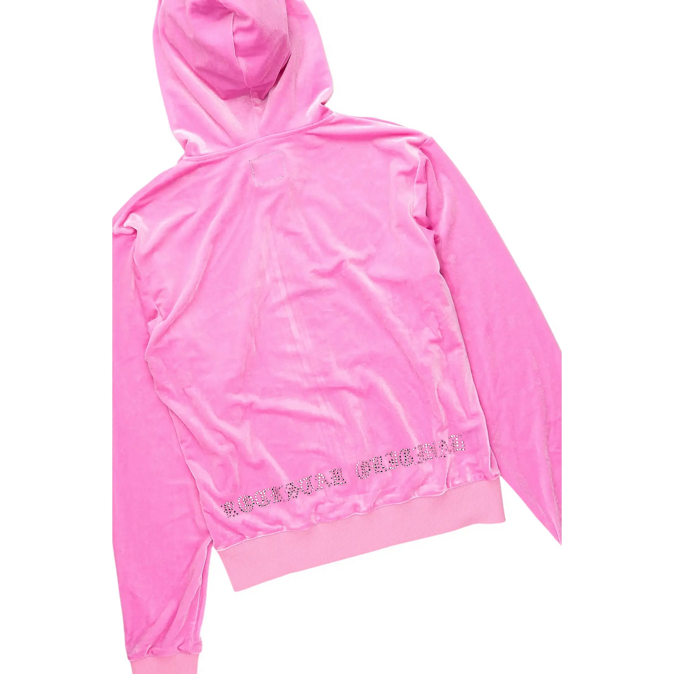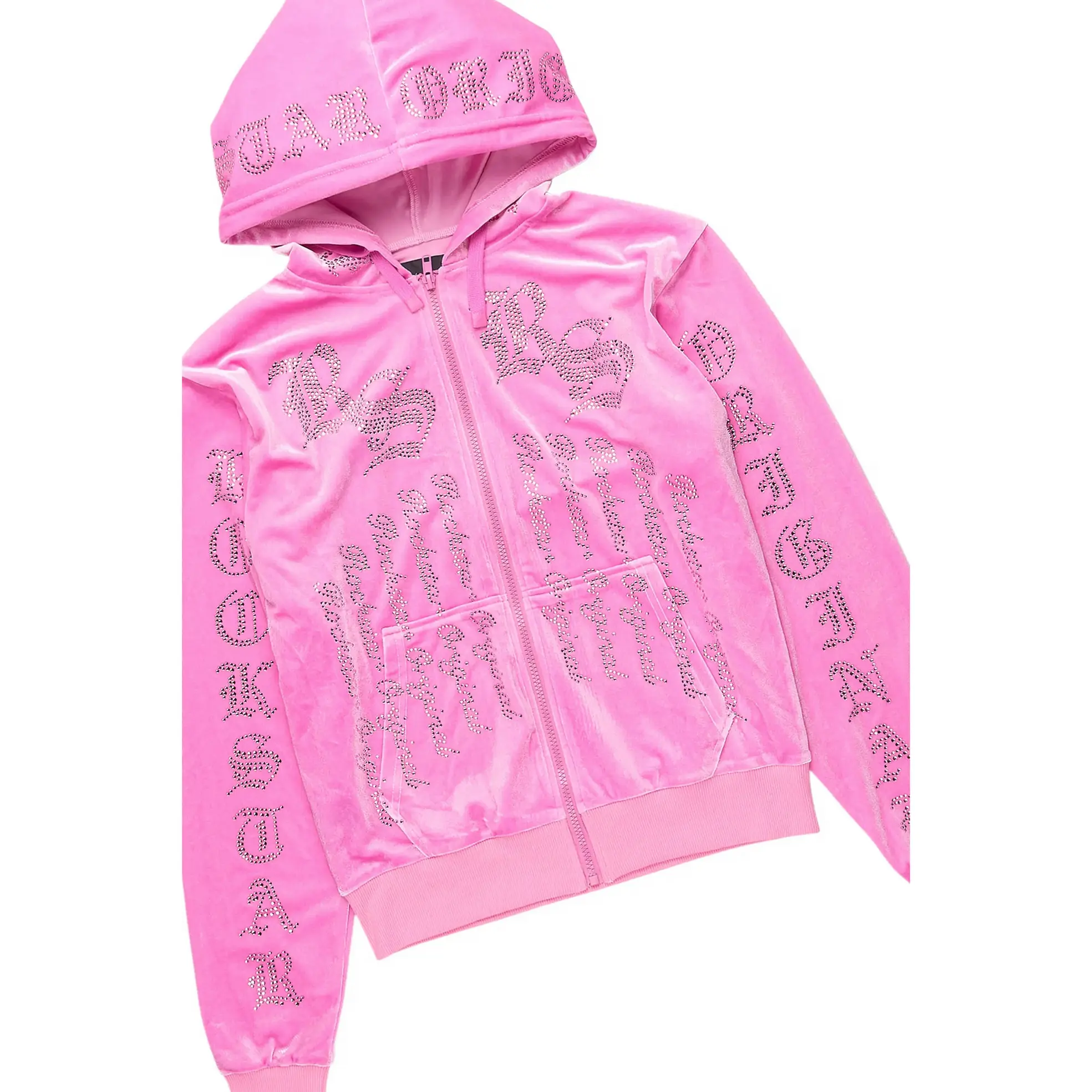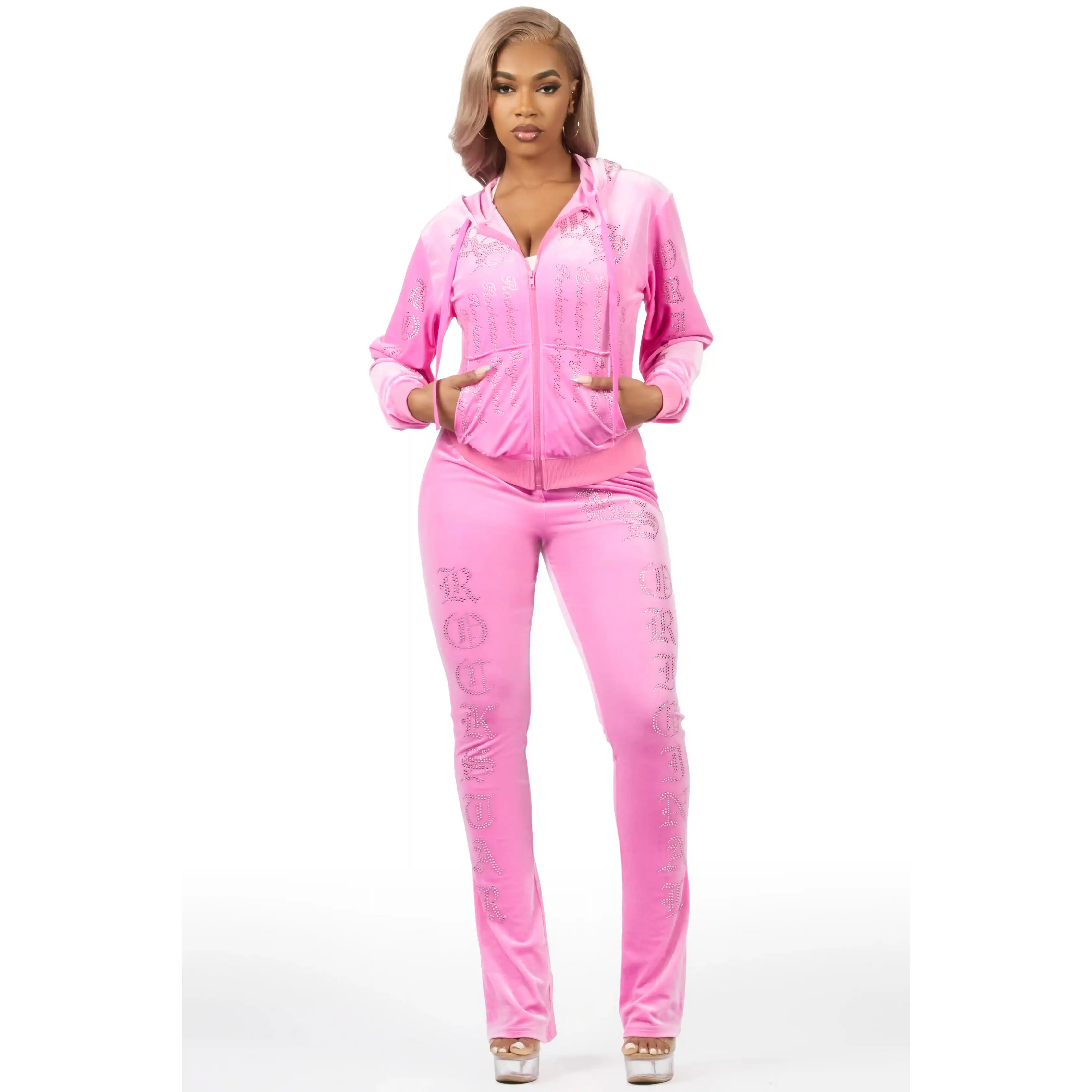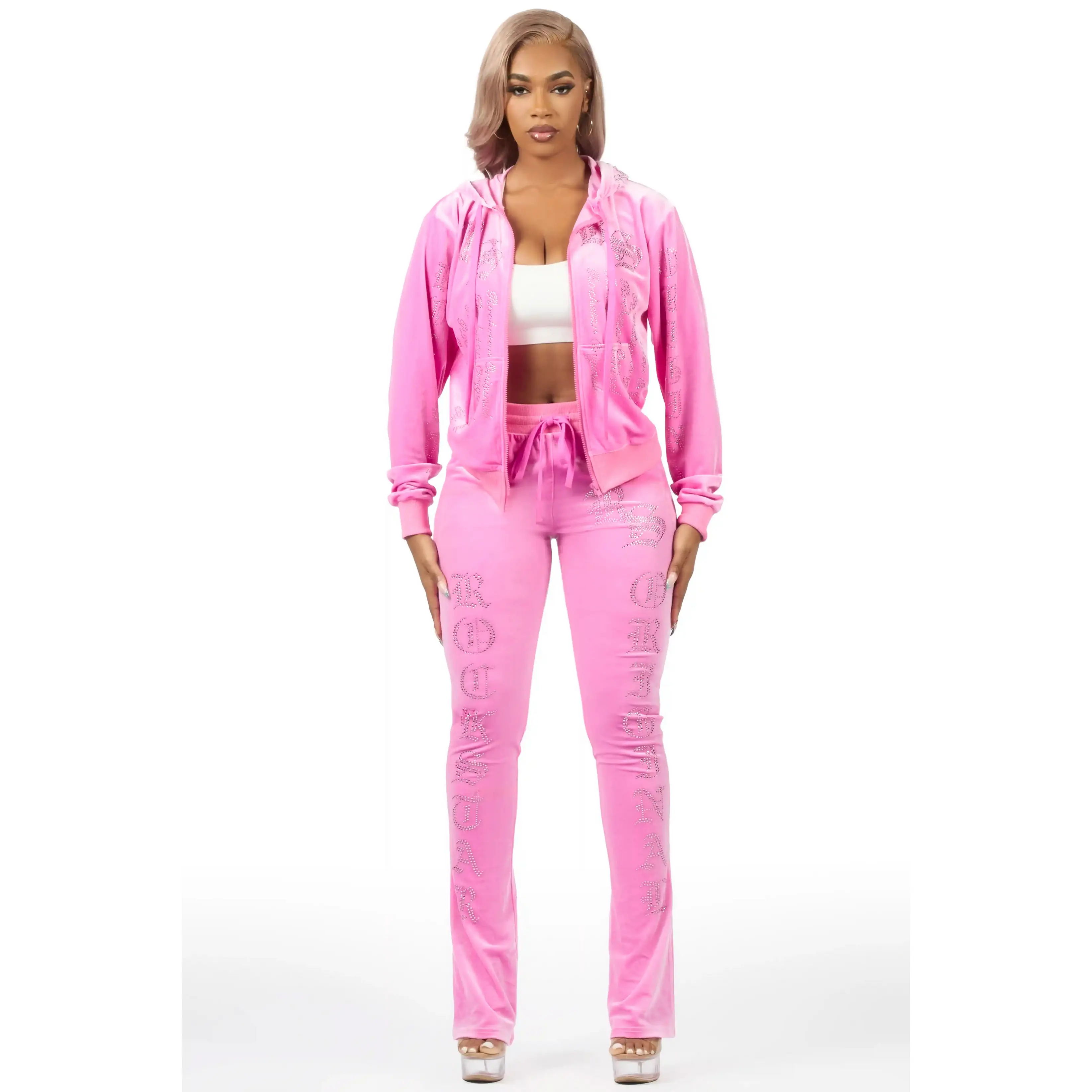 Doniqua Pink Rhinestone Velour Stacked Track Set