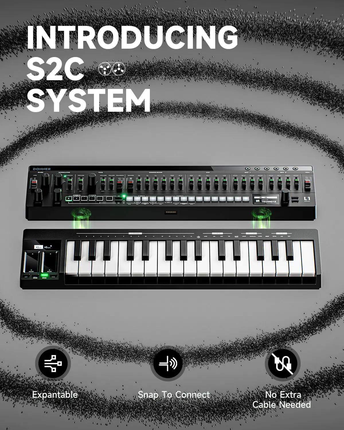 The L1 and KB-32M seamlessly connect through the innovative Snap2Connect magnetic system, streamlining the creative process, enhancing workflow efficiency, and unlocking greater versatility for music production and performance. You can freely choose whether you need the keyboard KB-32M that matches the ESSENTIAL L1. This listing only includes the ESSENTIAL L1 (1 pack).