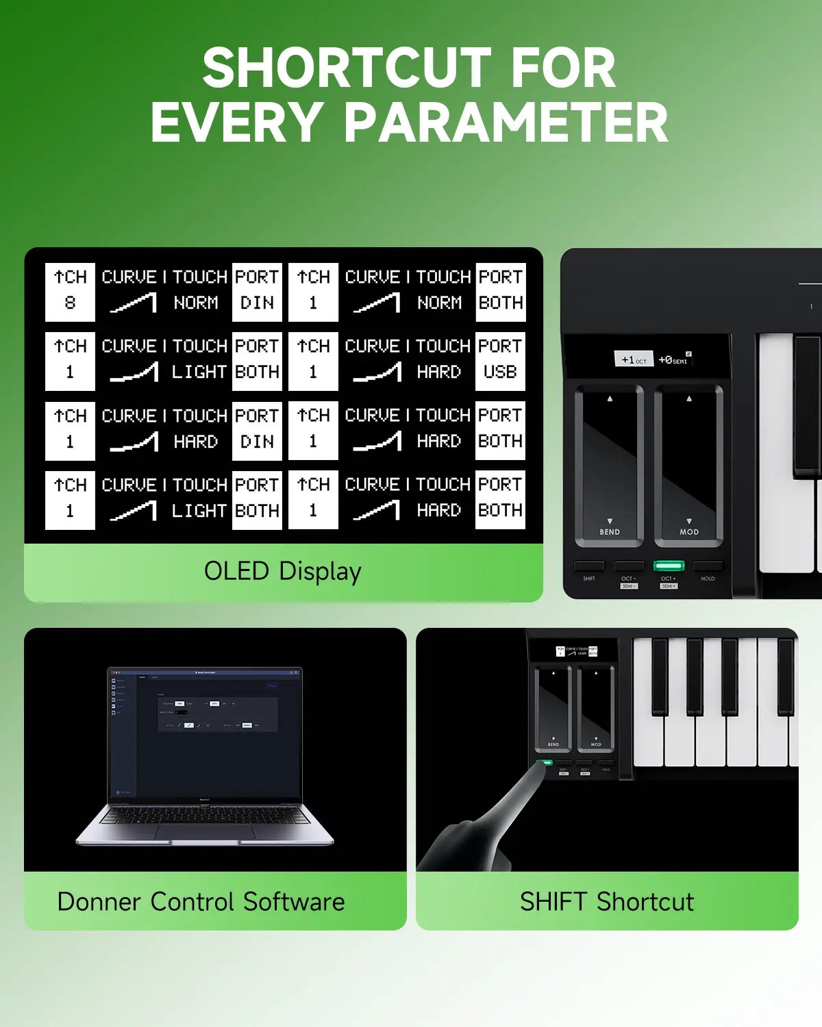 ·Intuitive One-Touch Settings (OLED Display) – (Almost) all settings can be easily adjusted via the SHIFT key combination and OLED graphical display. Simple, quick, and user-friendly.