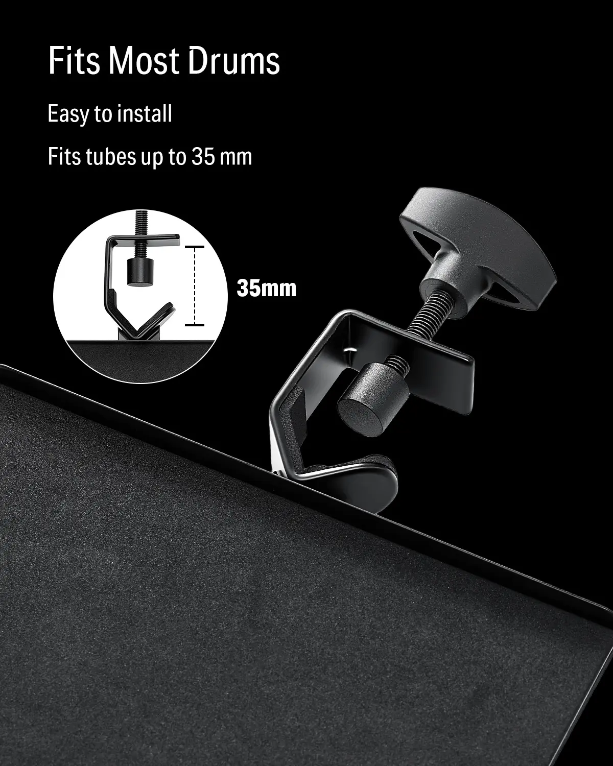 ·Fits Most Drum Stands: Fits most electric drum kits, acoustic drum stands, and percussion hardware, adapting to tubes under 35 mm for quick, stable installation.