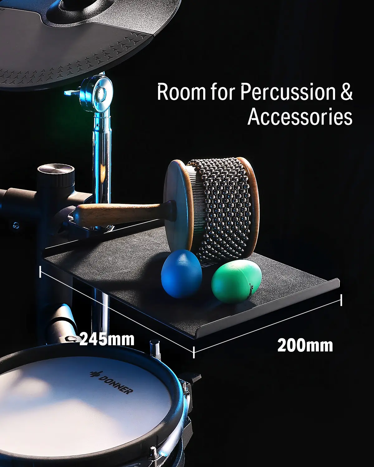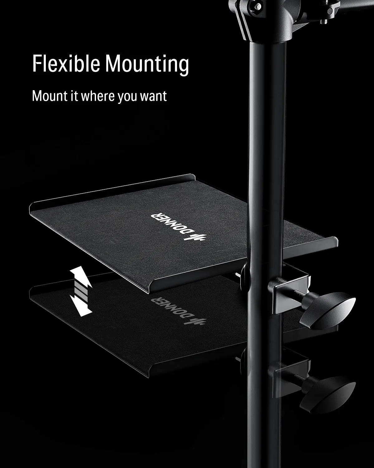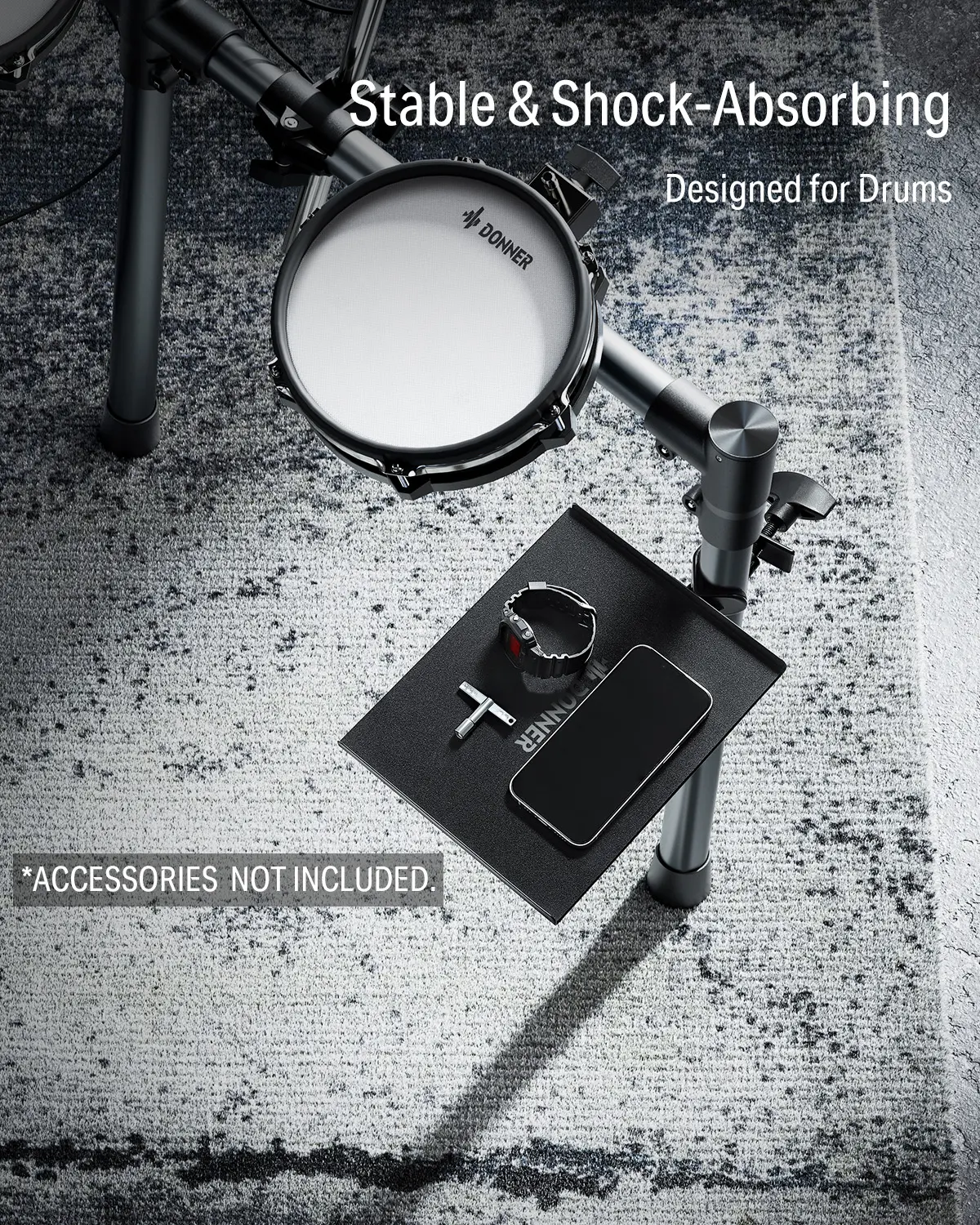 ·Flexible and Easy Mounting: The Donner clamp-on tray can be fixed anywhere on your drum stand, giving you flexible placement for easy access to your gear and drum accessories.