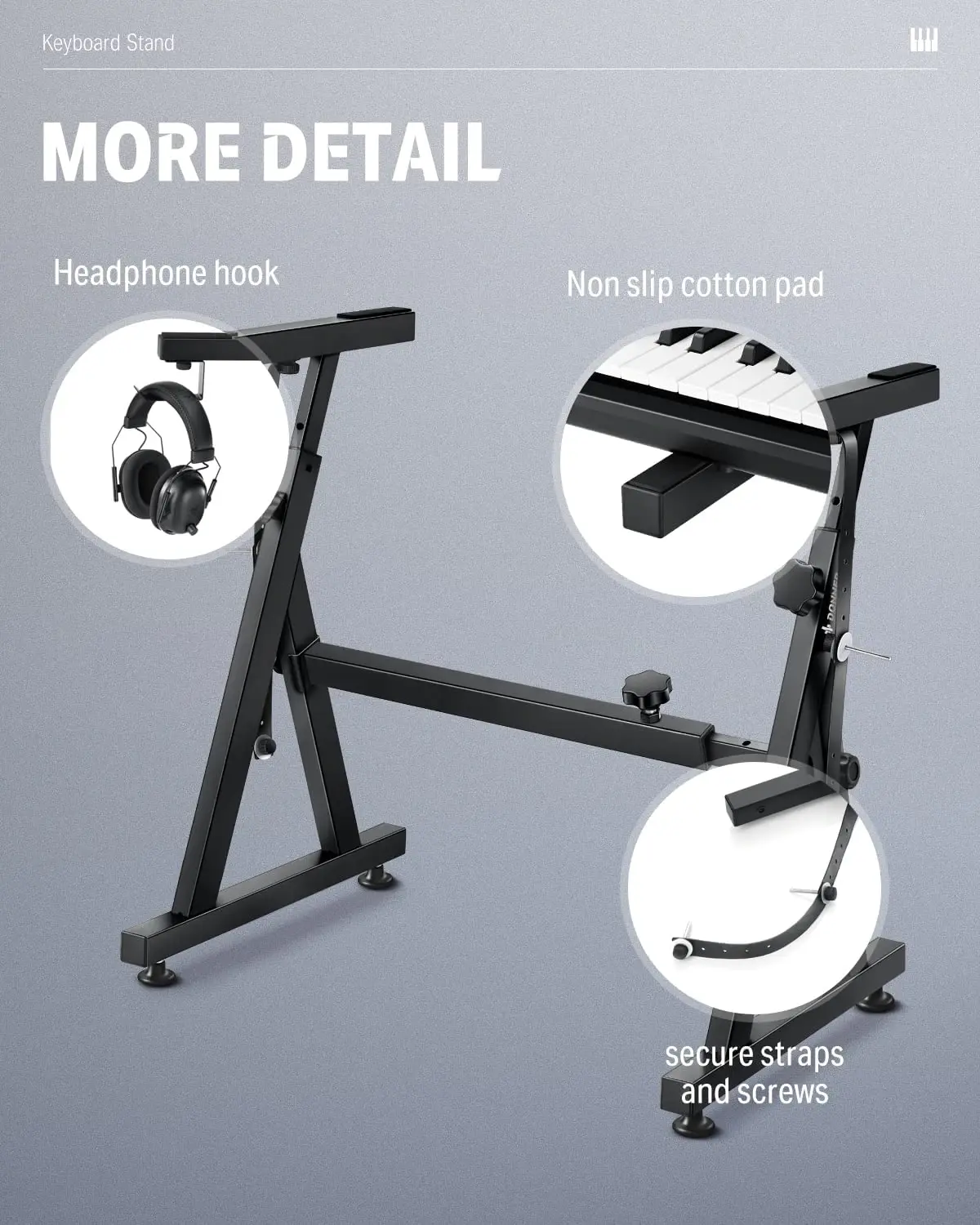Donner Heavy Duty Z Style Keyboard Stand gives you a more stable keyboard stand experience. Provide the most reliable and safe protection and support for your piano.