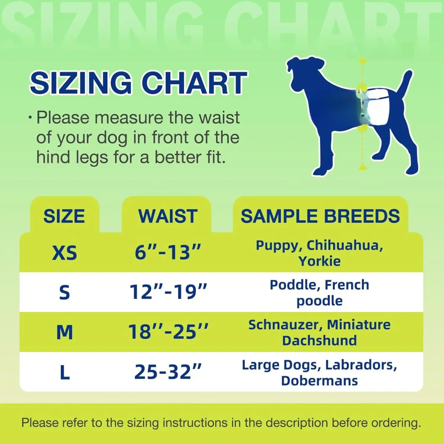 ·How to Wear:Place the diaper on the dog's excretory position.Attach the White Fasteners on the diaper.