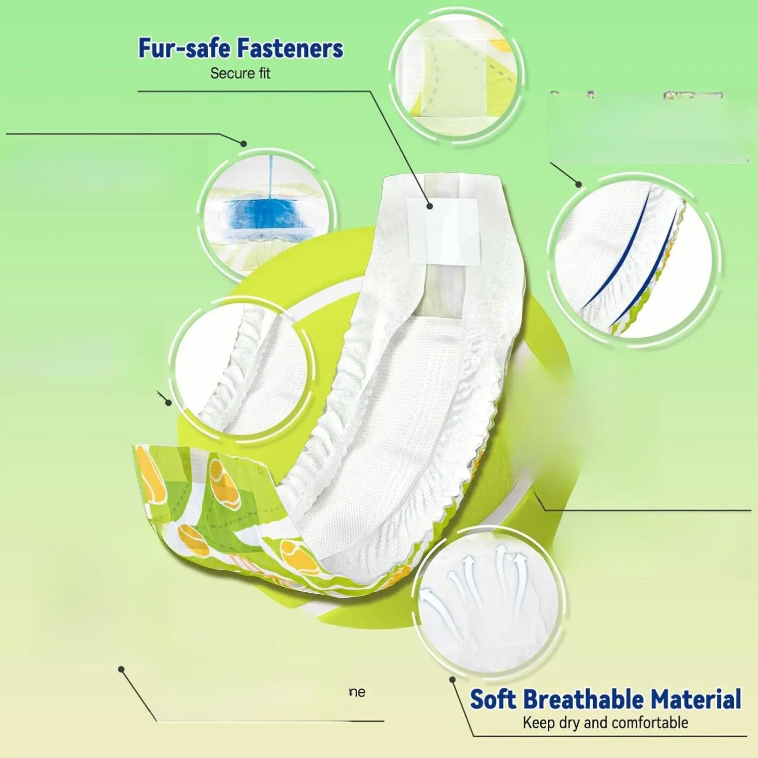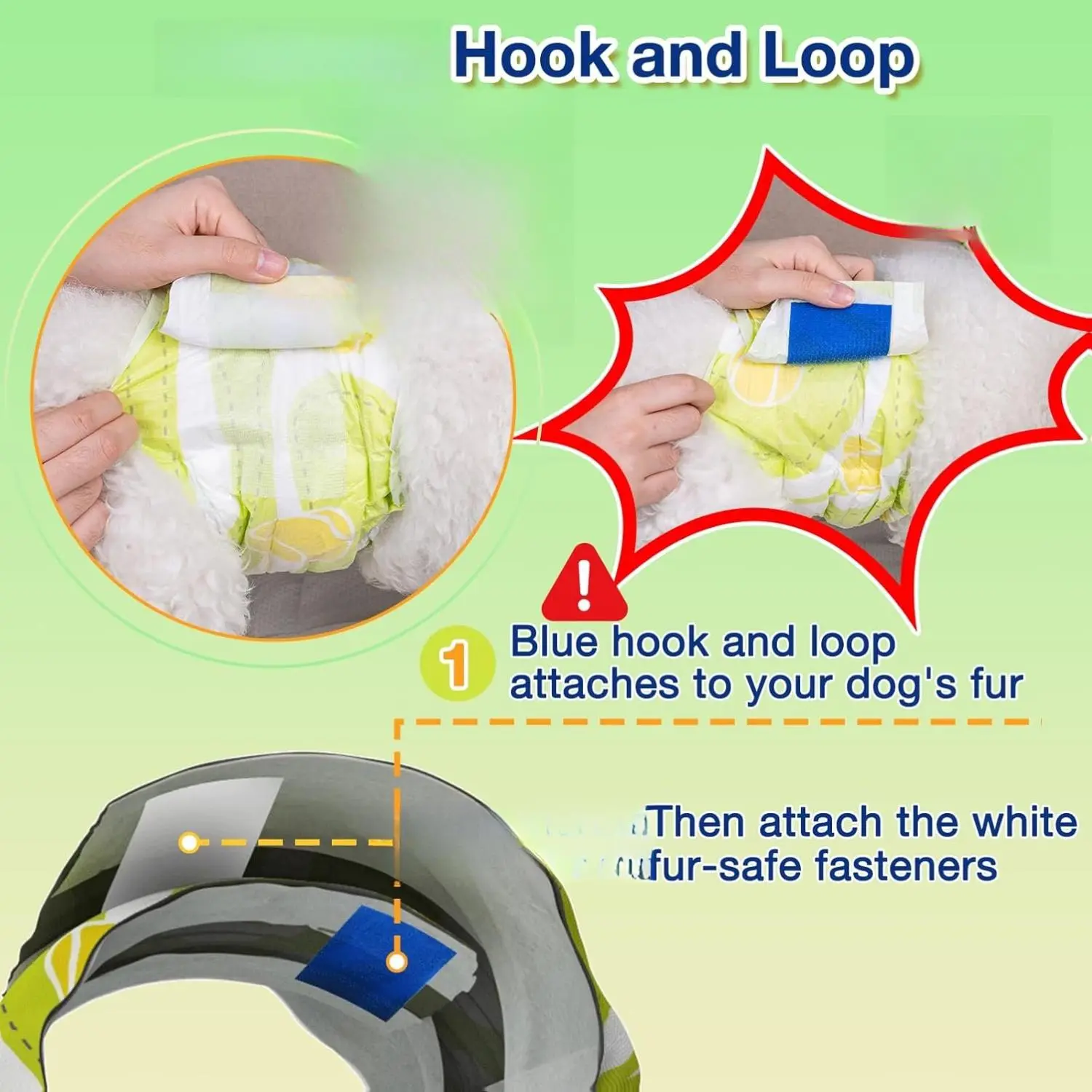 ·New Anti-Slip Design: Re-adjustable fasteners provide a snug, comfortable fit around your active pup's waist. The blue hook-and-loop keeps the diaper in place, preventing shifting.