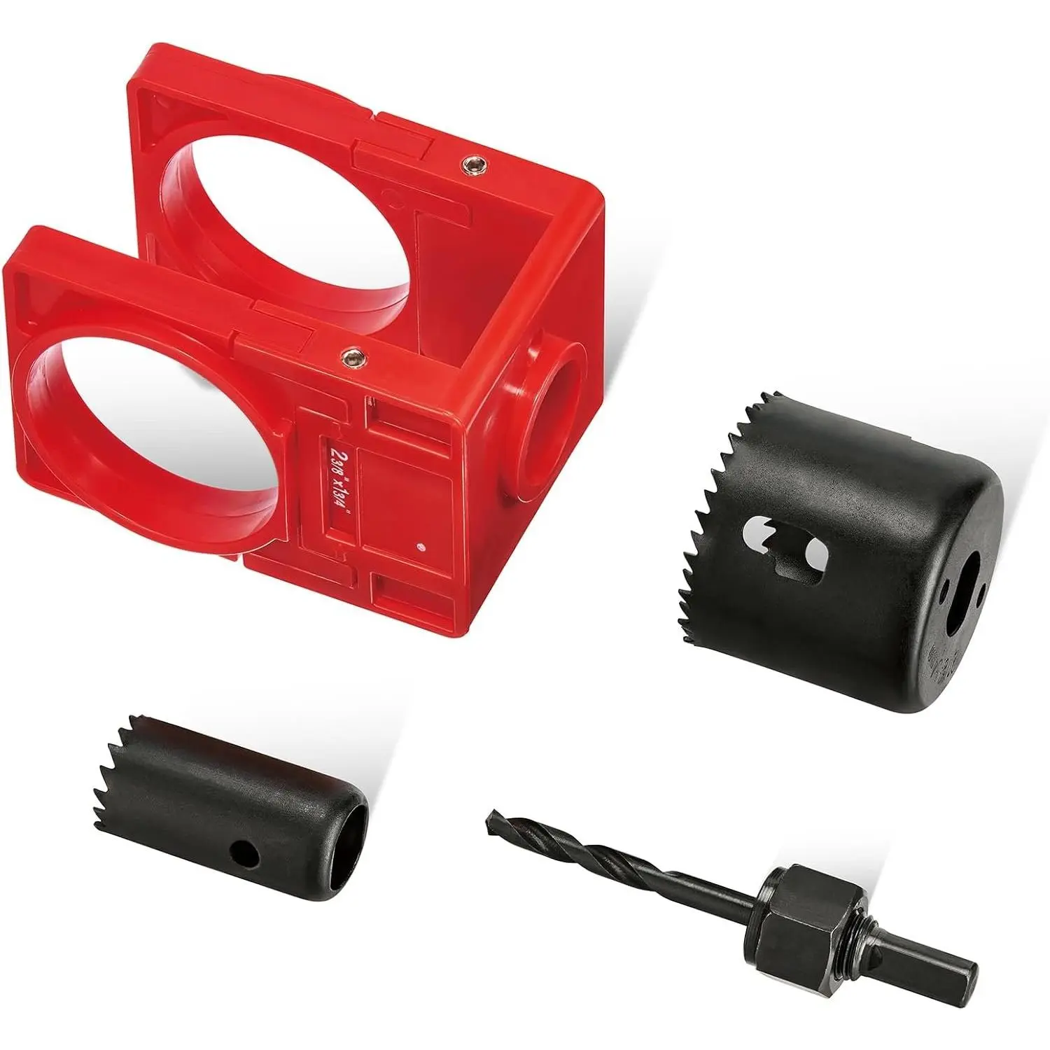 Package Includes: 1 count U-type adjustable guide template, 2 count 1”(25 mm) and 2-1/8”(54 mm) hole saws (depth of is 50 mm), 1 count arbor with drill bit. But SCREWDRIVERS are NOT INCLUDED