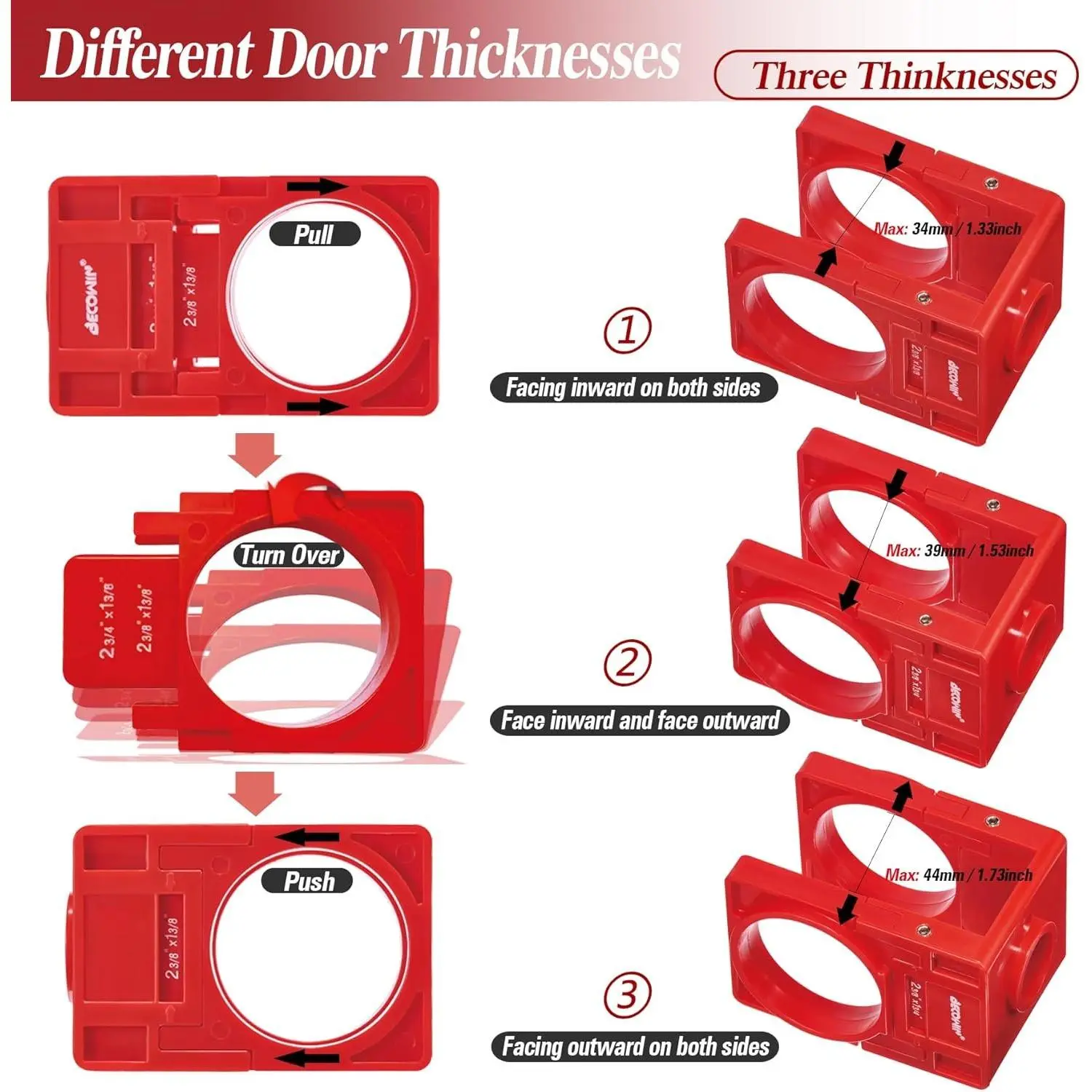 For Daily Use:Designed to fit the common lock sizes in daily use and works well with doors. The adjustable plastic guide template fits /8-inch and /4-inch thick doors, fits 2-3/8-inch and 2-3/4-inch backsets