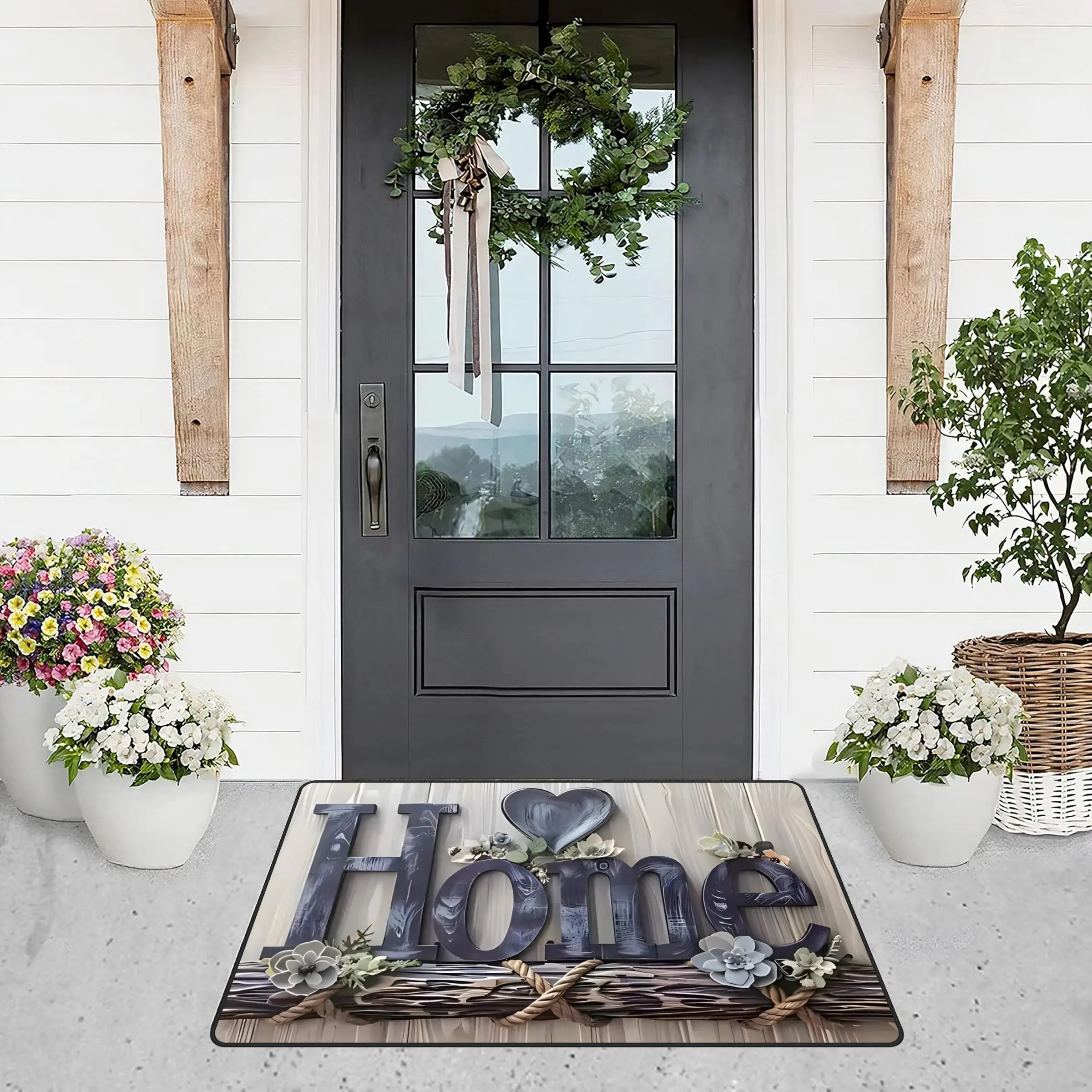 Wood Grain & Home Letter Pattern Door Mat,  1 Count Non-slip Floor Mat, Decorative Carpet for Home Living Room Bedroom, Home Decor, Boho Floral Rug