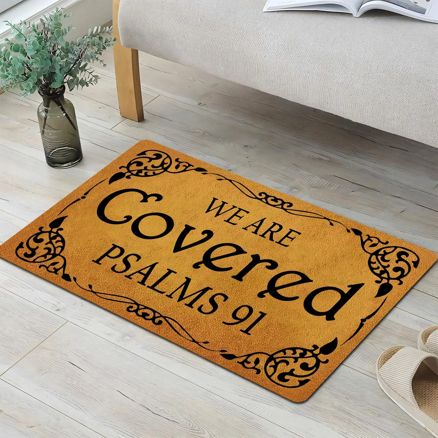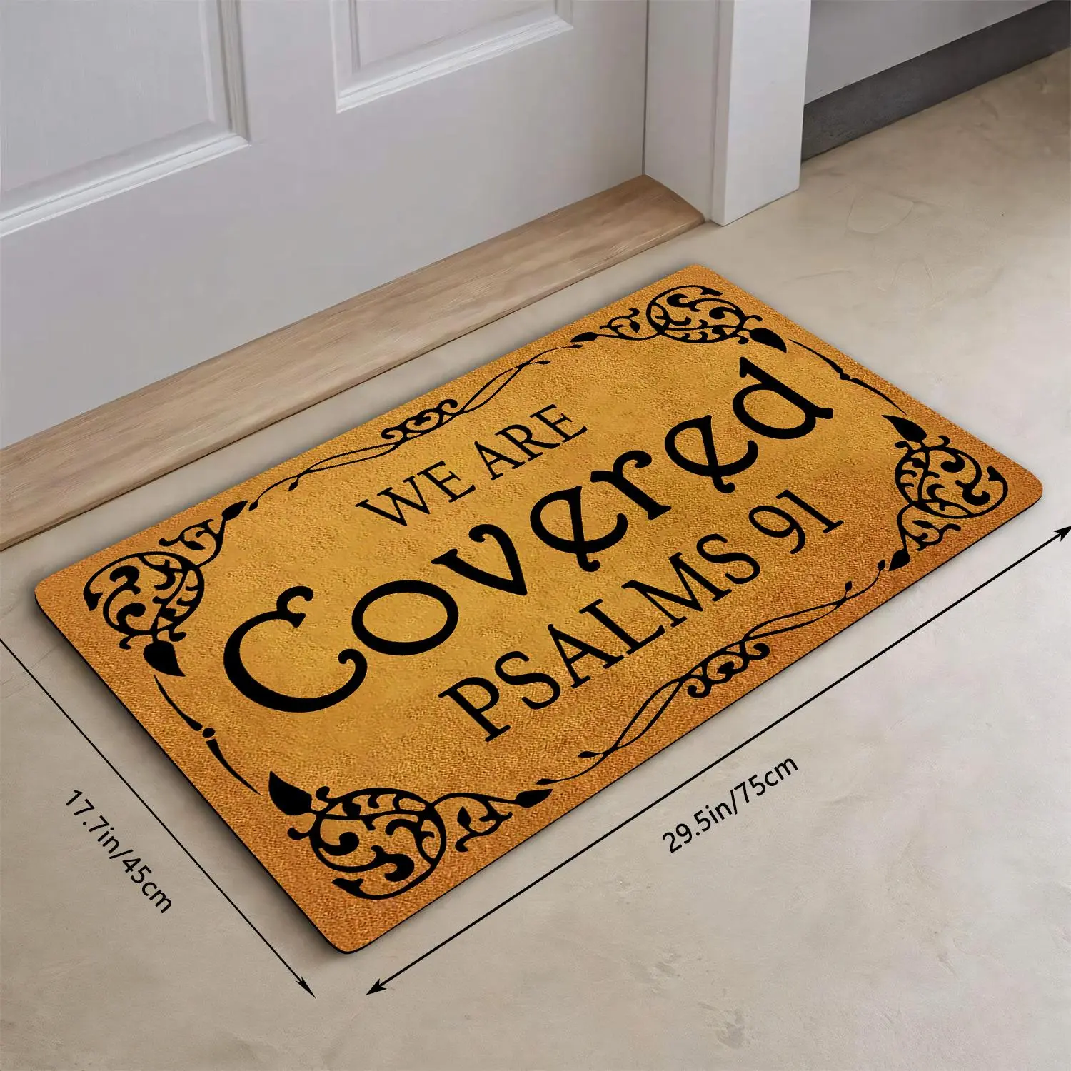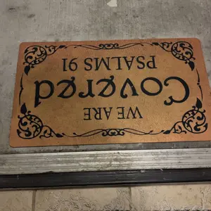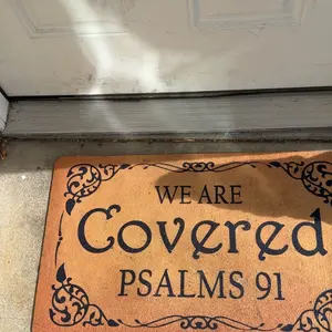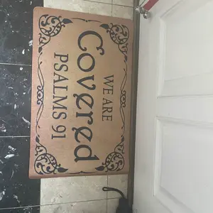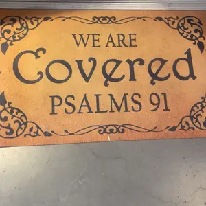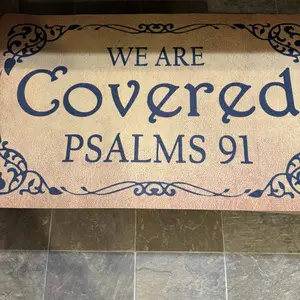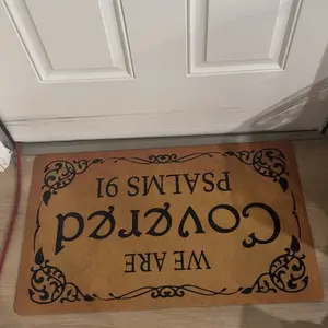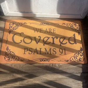I just got my beautiful mat and let me tell you it came in the right time and day✨🎶😢♥️it made me so happy it put it right in my front door 🚪 but inside , so everyone that comes in and out can read it, nobody knows what we go through, and with this beautiful message of the Bible reminds that we have God by our side🙏✨♥️