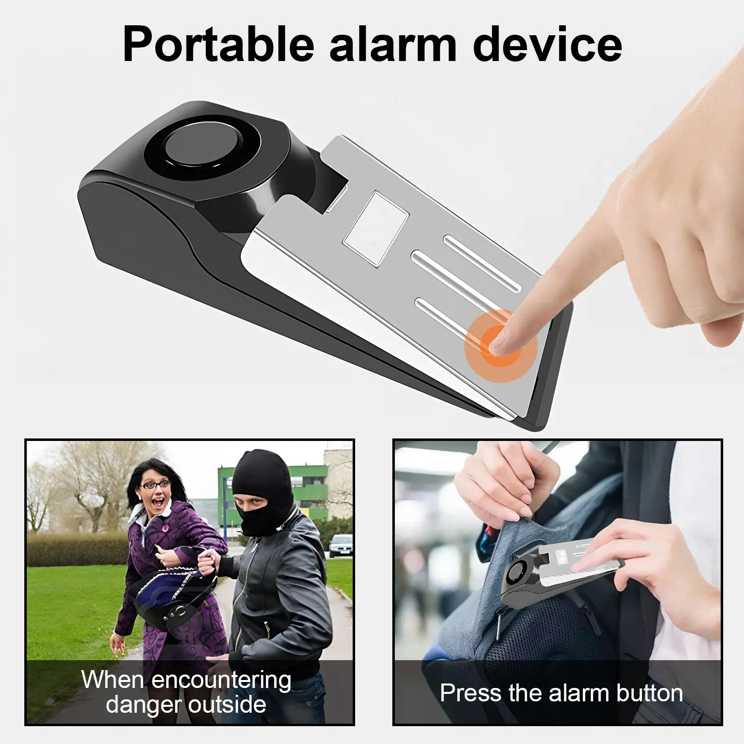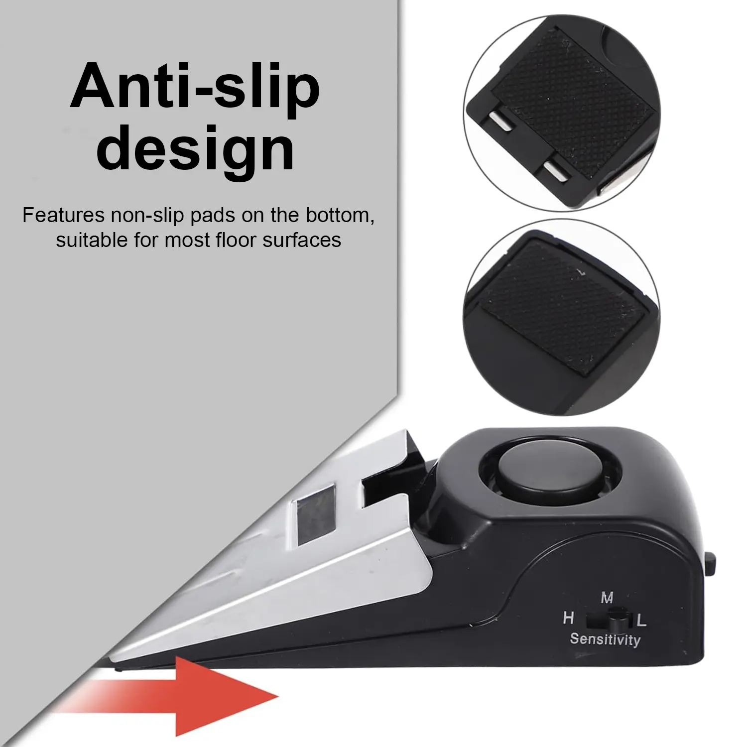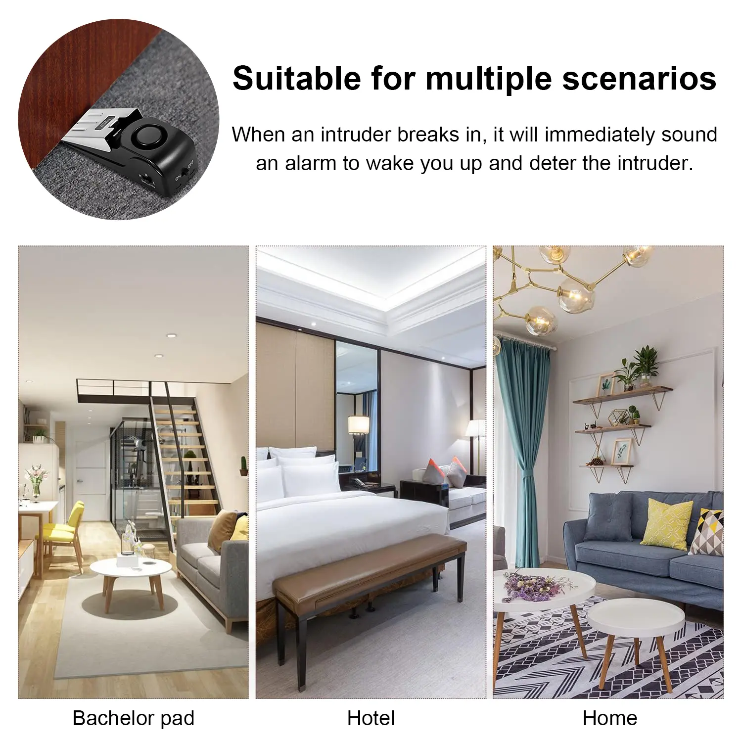【Loud Alarm】 Alarm volume up to 120 DB. Once someone opens the door and invades the room, our doorstop alarm wedge will make a super loud (120DB) alarm sound if there is any pressure on the door, which can easily alert you and others nearby and scare off the intruder. It a reliable addition to any security system.