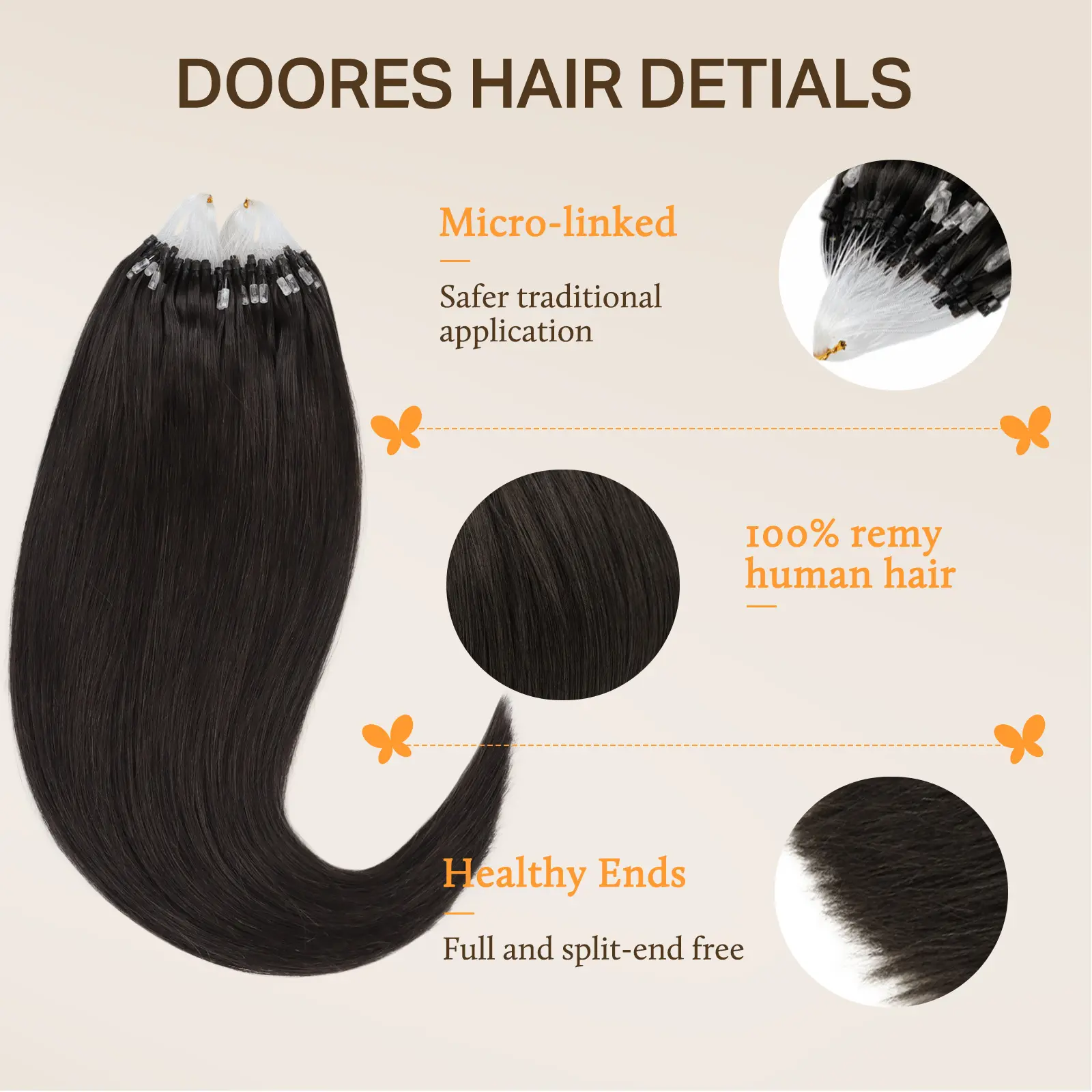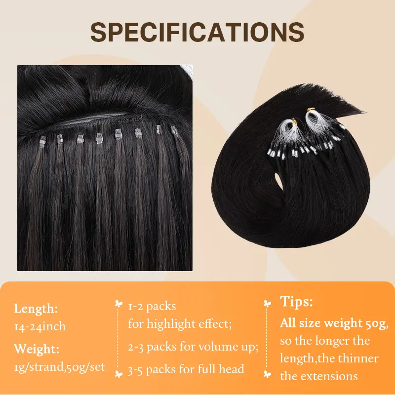 Doores Micro Link Hair Extensions 16-24inch 100% Human Hair Straight for Daily Use & Easy to Comb