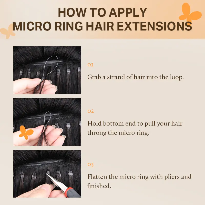 2.Hold bottom end to pull your hair throng the micro ring.