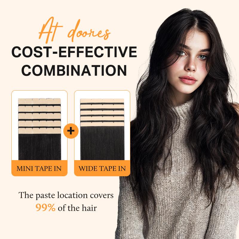【Wide Tape in Extensions Real Remy Invisible Seamless Tape】 – 10 pieces of wide tape per pack (50g), 20 pieces of wide tape per pack (100g), mini tape per pack (35g),Can be used in conjunction with tape-in extensions.