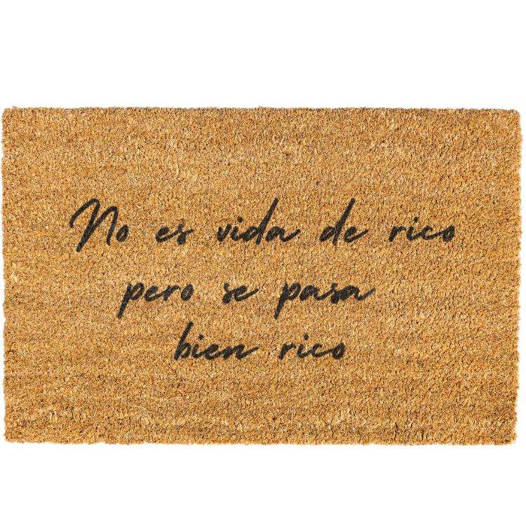 This coir doormat is perfect for outdoor entrances, adding a touch of humor to your front door. With its funny "No es vida de rico Doormat" message, it's sure to make your guests smile.