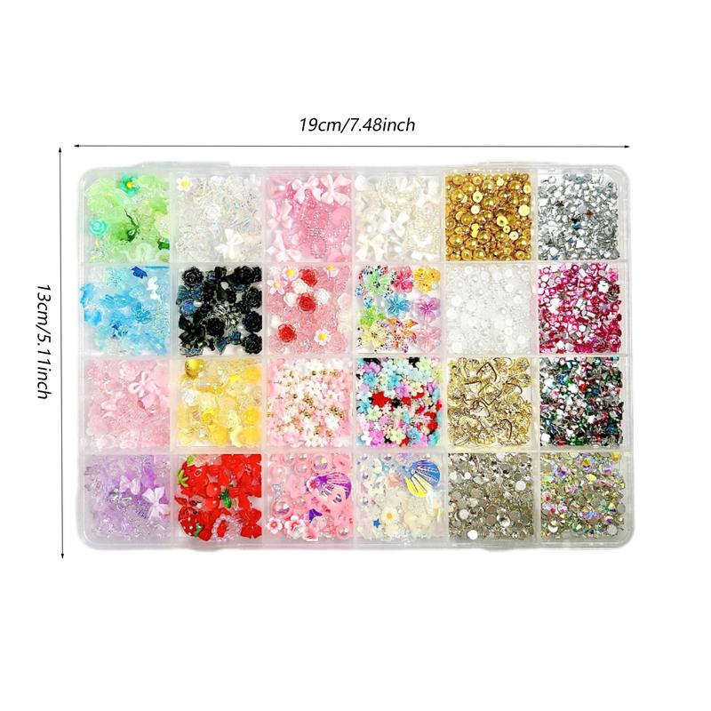 1Box Dopamine Colored Resin Flower Bow Nail Charms Semi-circular Rhinestones Pearl Mini Shell Feather Flakes Mixed Nail Decor DIY Elegant Rhinestone Decorated