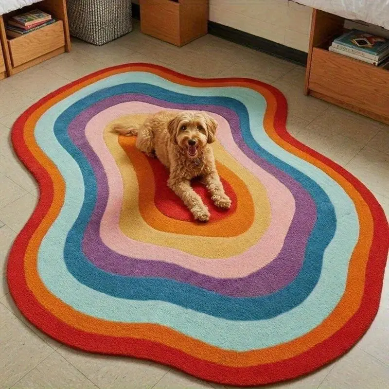 1pc Dopamine Rainbow Color Carpet Gradient Bedroom Decor Decorative Rug Irregular Shape Soft Area Rug Bedside Plush Carpet Luxury Ins Style Living Room Carpet Home Large Area Lounge Closet Carpet Washable Study Lounge Anti-slip Floor Mat