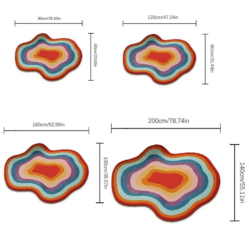 5. 1pc Dopamine Rainbow Color Carpet Gradient Bedroom Decor Decorative Rug Irregular Shape Soft Area Rug Bedside Plush Carpet Luxury Ins Style Living Room Carpet Home Large Area Lounge Closet Carpet Washable Study Lounge Anti-slip Floor Mat