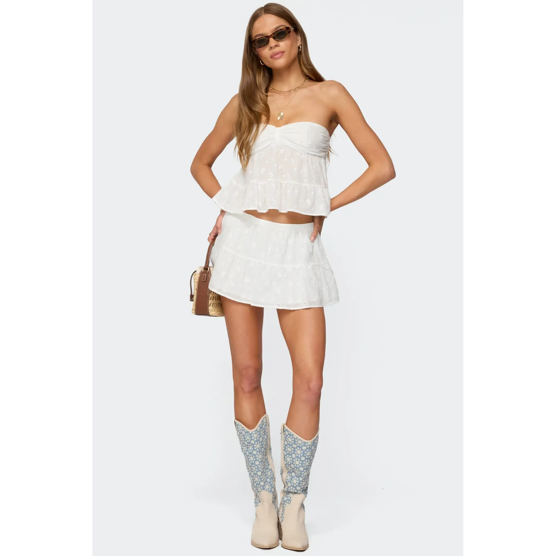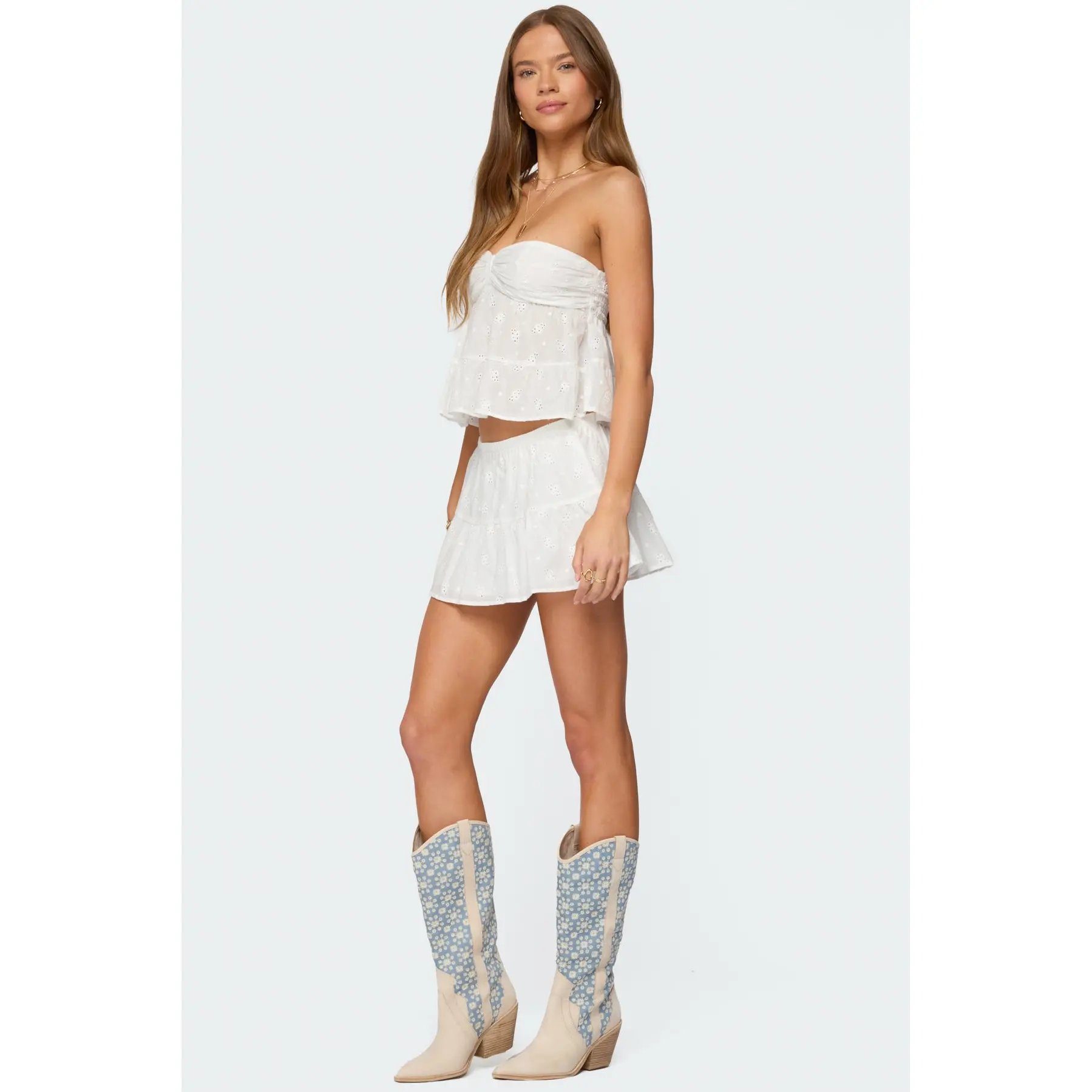 Dora Eyelet Flared Mini Skirt