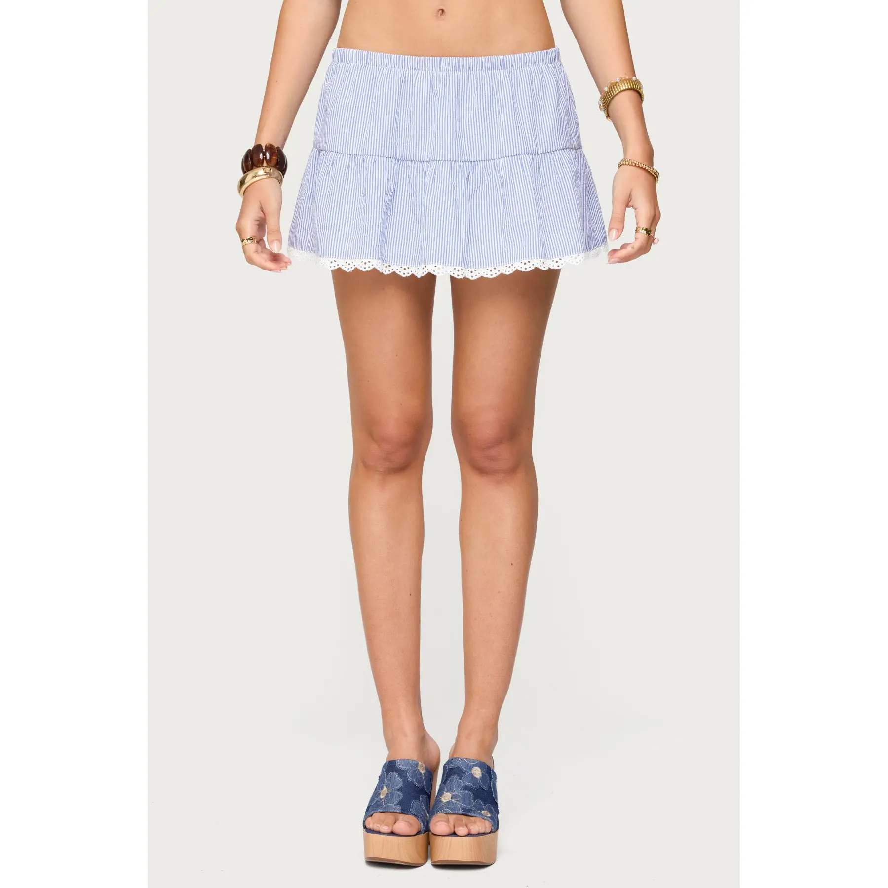 the cutest blue striped linen mini skirt from edikted🤍 #edikted #linenskirt #miniskirt