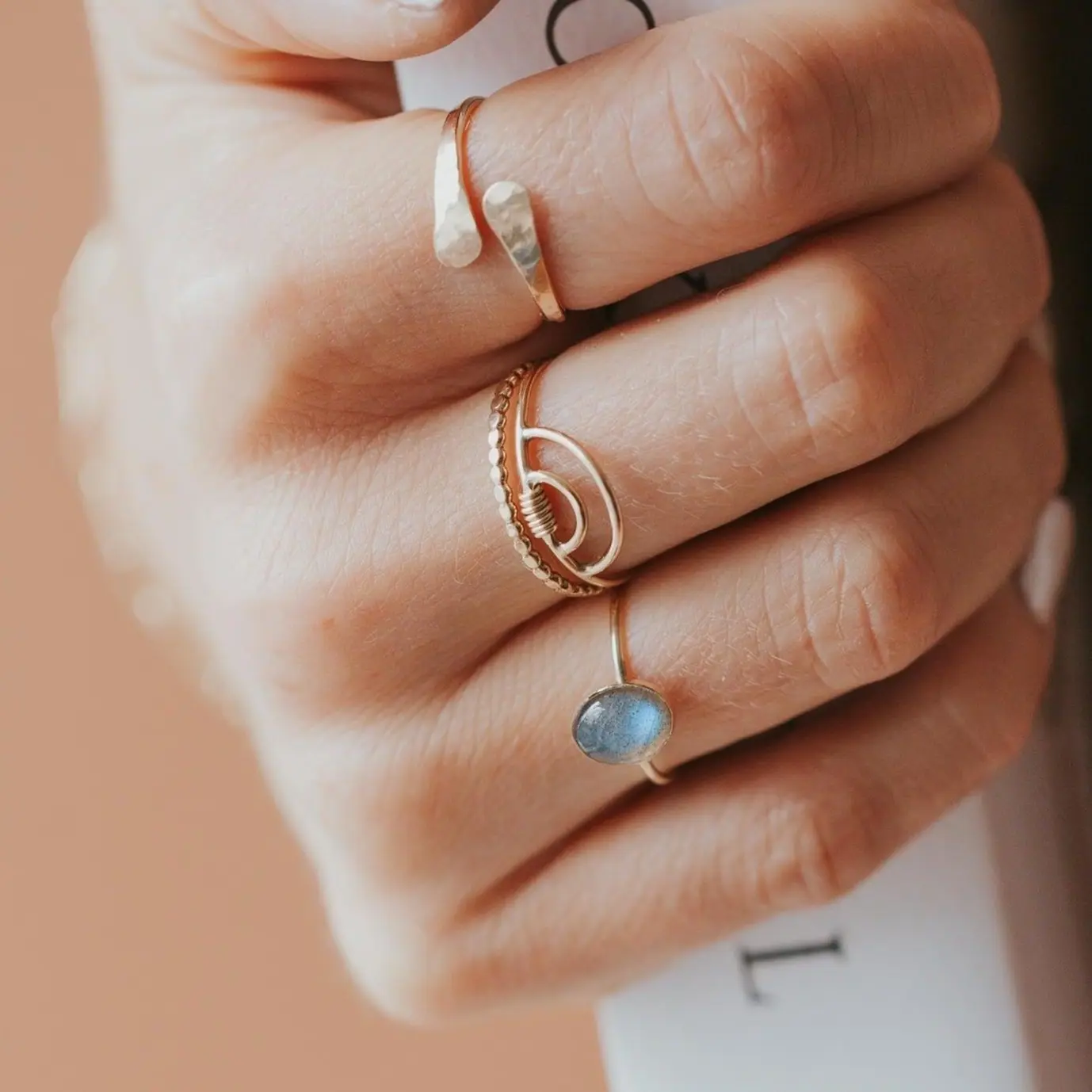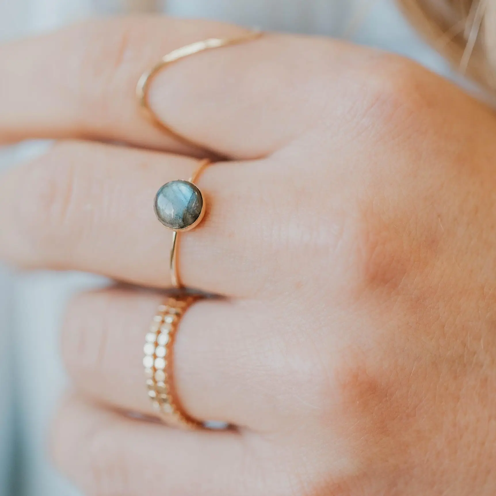 This ring is even more beautiful than I expected. It reflects light similar to moonstone, shifting colors. I love layering it with my valley trio
