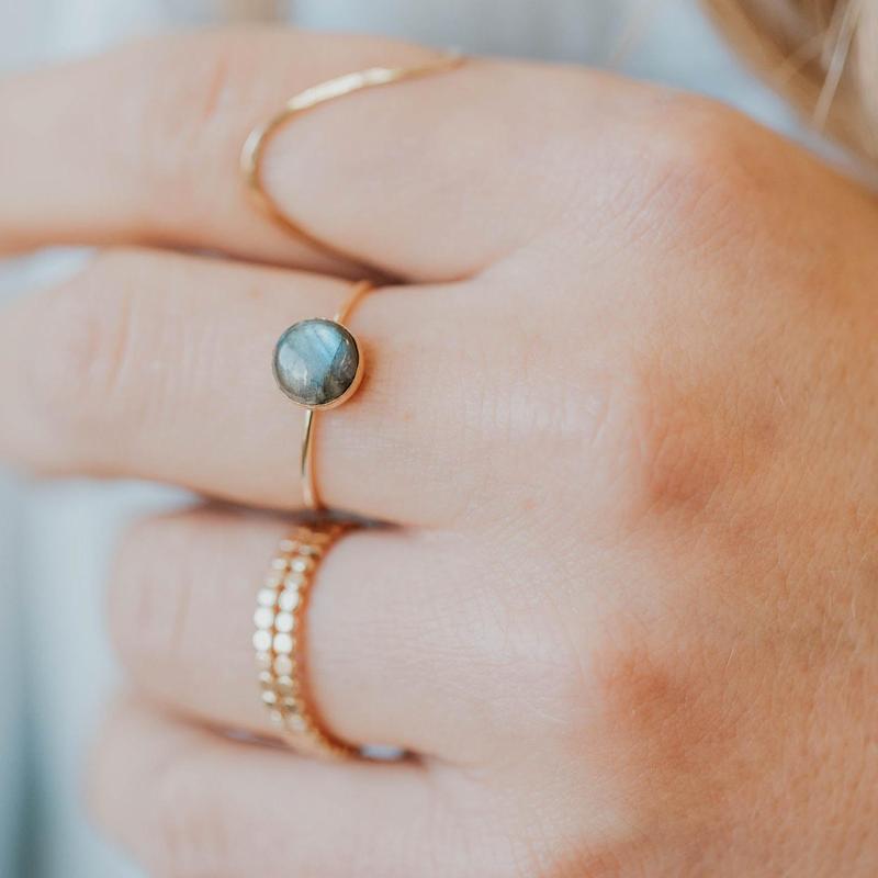 Pretty stone set in a simple band that looks great when layered with my Bubble band!