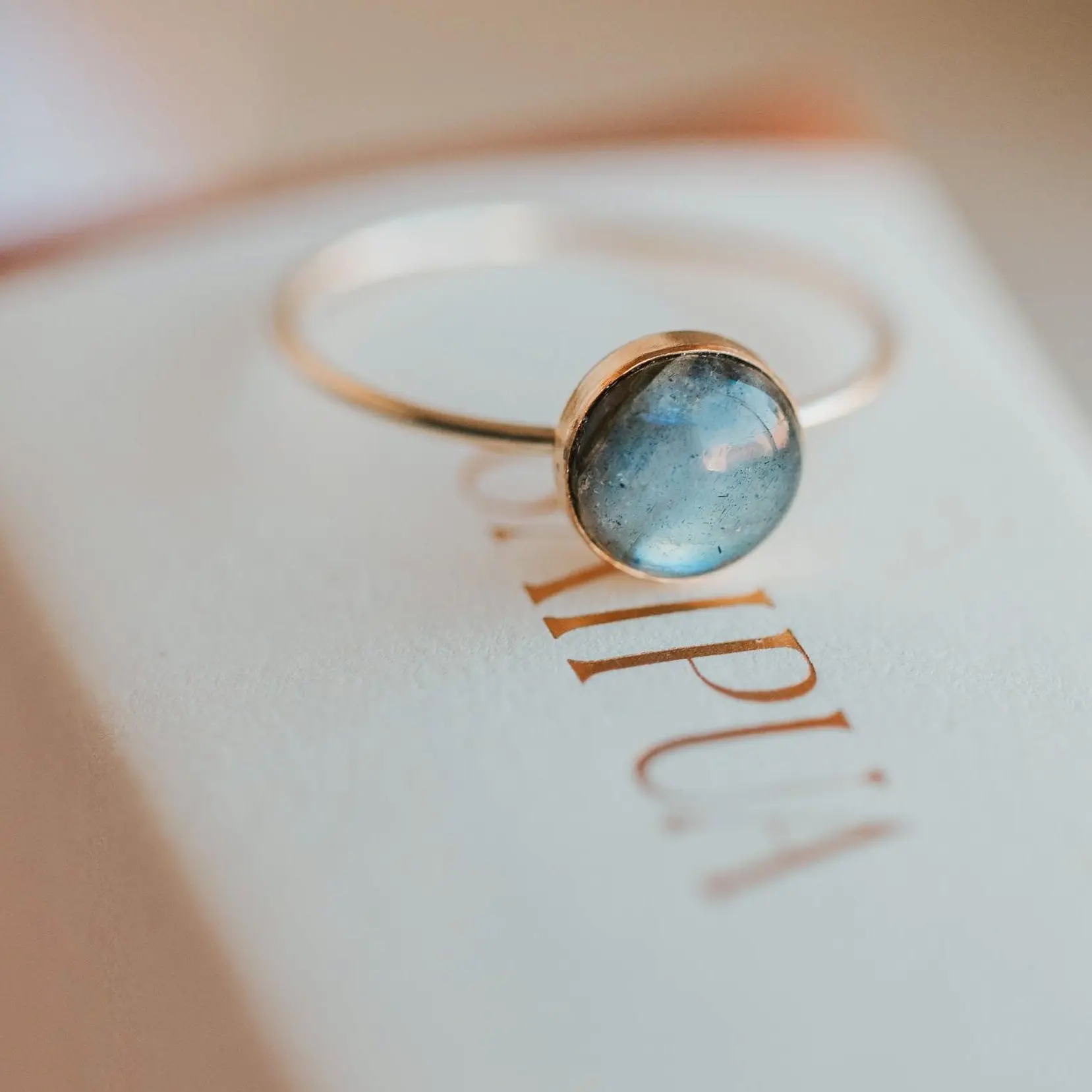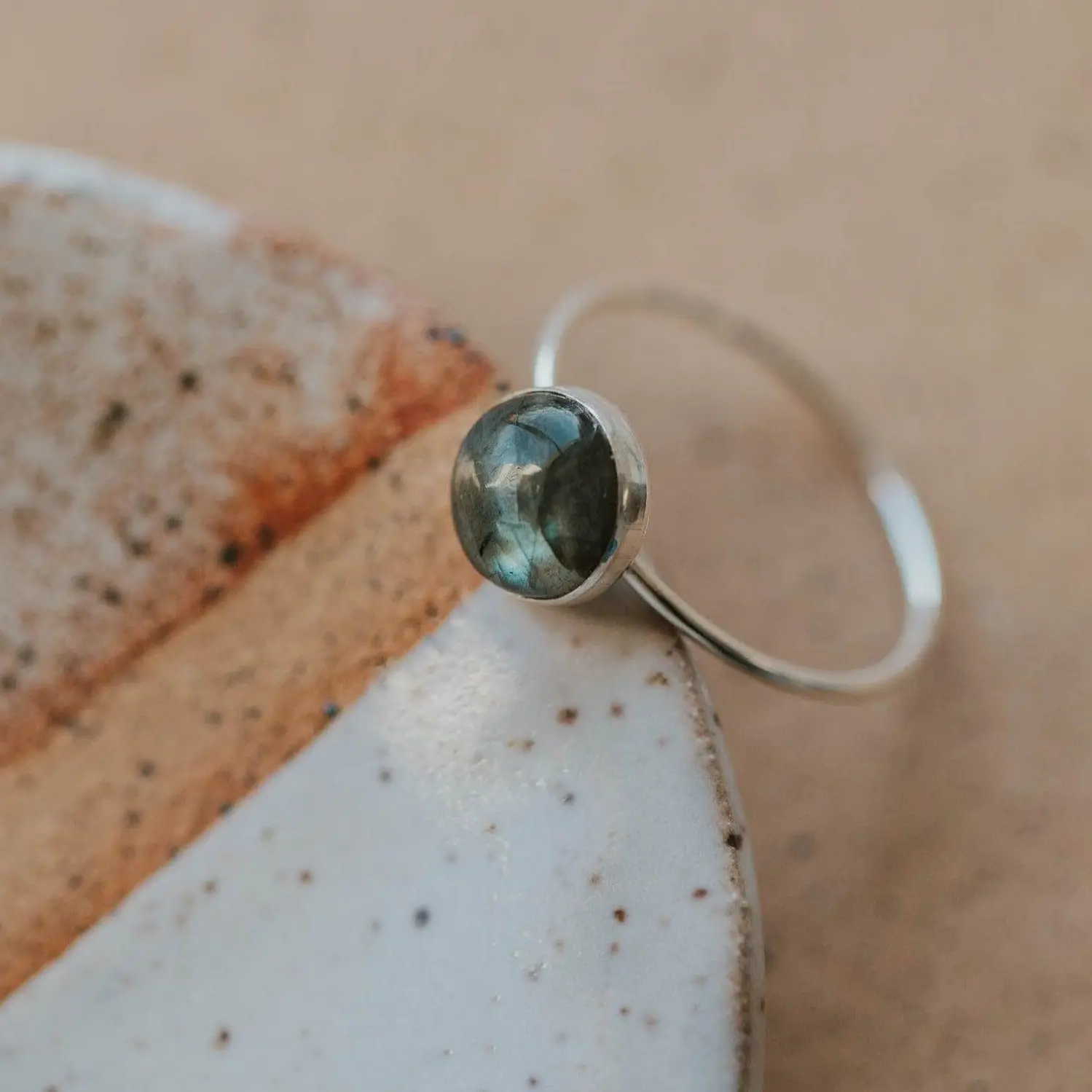 Absolutely love this ring! It’s simple and the hues of the labradorite match one of my very favorite summer settings—thank you HelloAdorn!