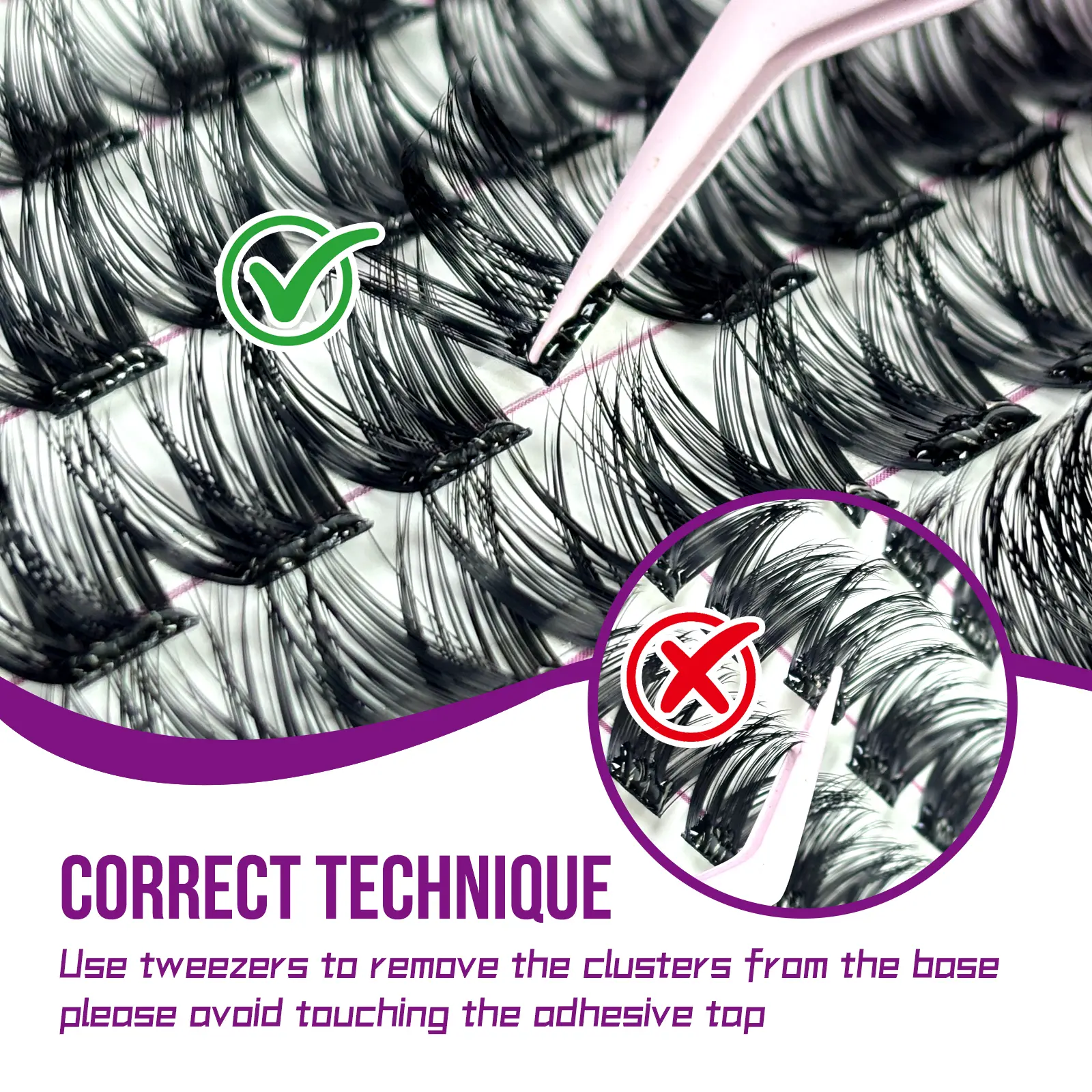 Designed with advanced stemless cluster technology and pre-applied adhesive at the lash root.