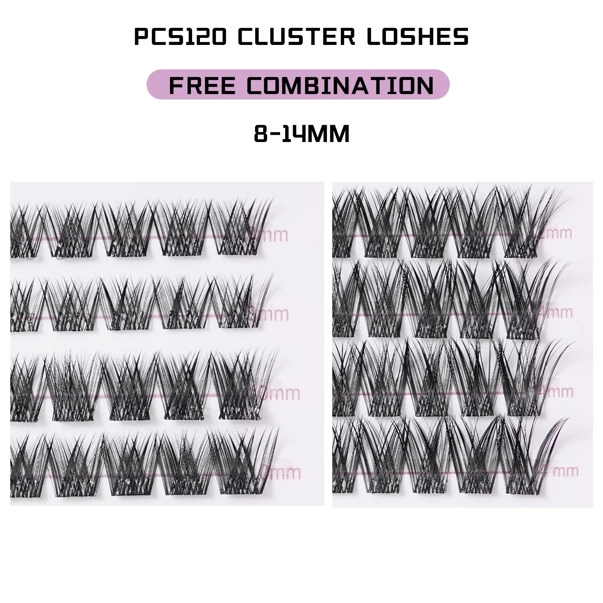Includes mixed cluster lengths within 8-14mm range, allowing you to customize natural lash styles.