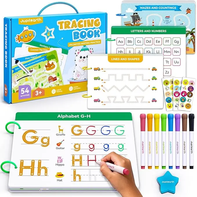 ·Bonus Activity Book: Includes 24 printed coloring sheets designed around three drawing steps—dot, line, and surface, 120 PDF pages across 8 themes: animals, plants, vehicles, numbers, letters, bingo games, and more. Kids can learn to recognize objects, practice writing, play bingo, and spark their imagination through coloring