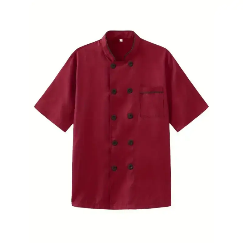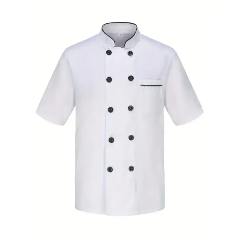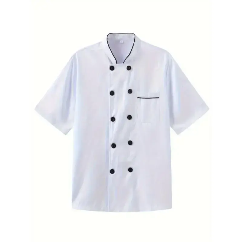 Double Breasted Chef Cooking Uniform For Kitchen Short Sleeve Jacket Shirt For Men Adult Restaurant