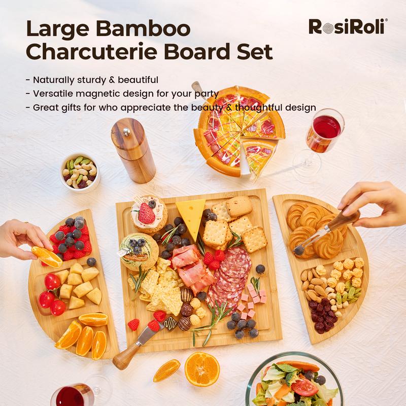 ·【Modular Magnetic Design for Customizable Serving】Strong magnetic connectors seamlessly link the 11.5"L x 11.5"W rectangular board and 11.5" round tray into a 23" extended platter (or use separately for flexibility).Effortless setup and disassembly—no shifting during use—ideal for both intimate dinners and lively parties.