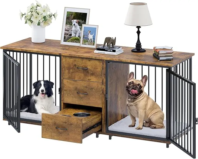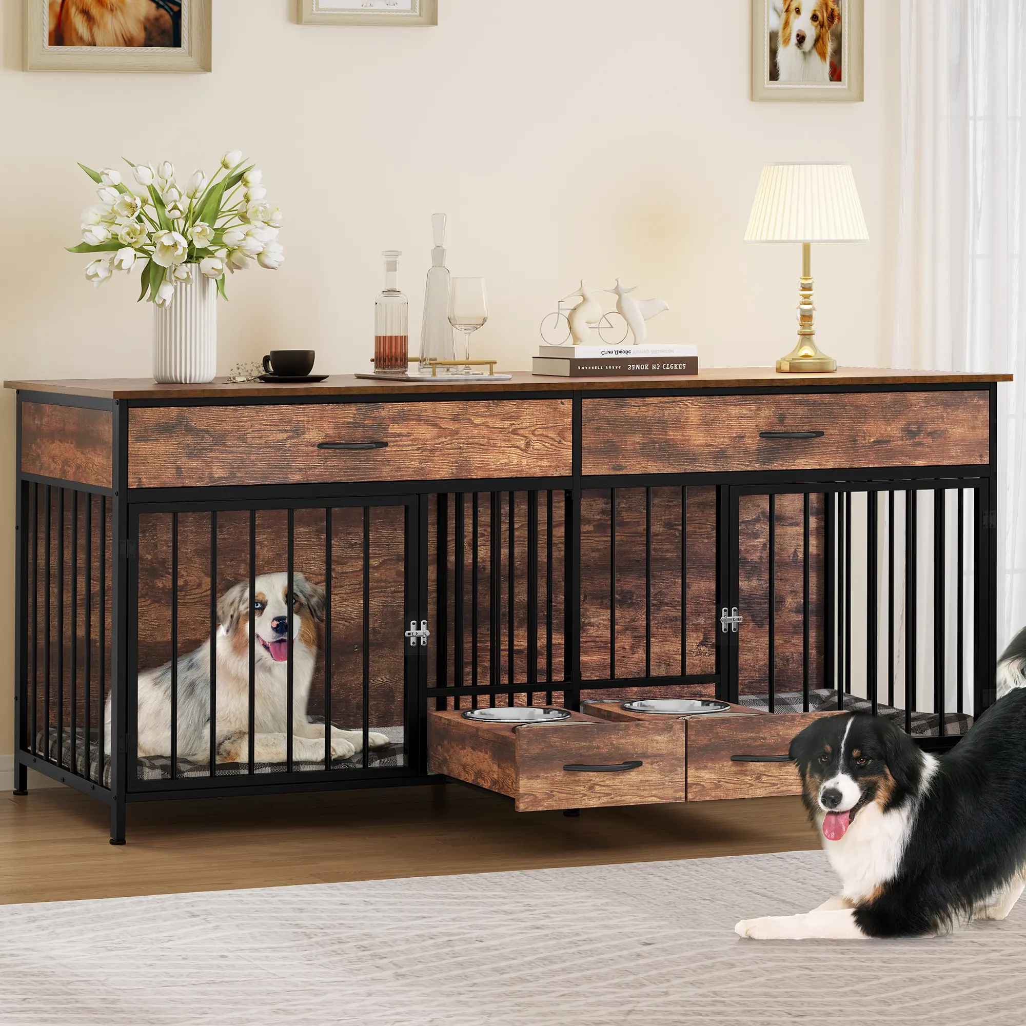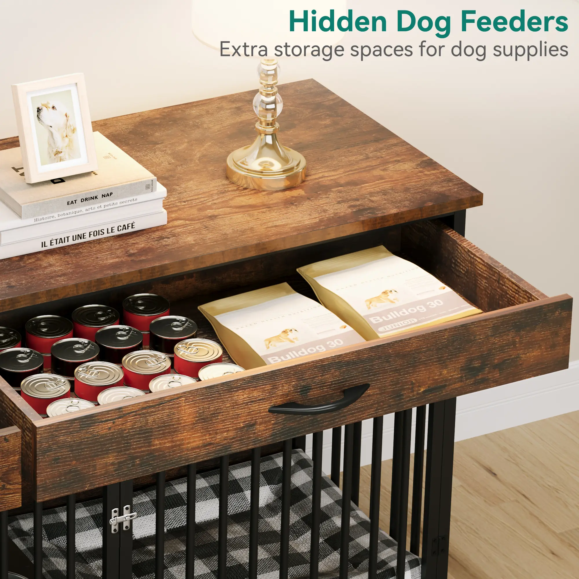 Multi storage Dog Cage with Drawers : The dog crate furniture comes with 2 large drawers to conveniently store dog food; Can be used as TV cabinets and side tables while the wide top accommodates various items or decorations to tidy up your home and meeting the needs of you and your dog