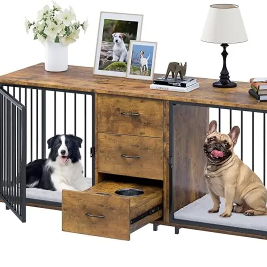 Double Dog Kennel Furniture: Our dog house has a partition in the middle to can give 2 medium to large dogs their individual space; Each of the two rooms is equipped with a sturdy metal latch to safely lock your dog in a cage and prevent them from running around
