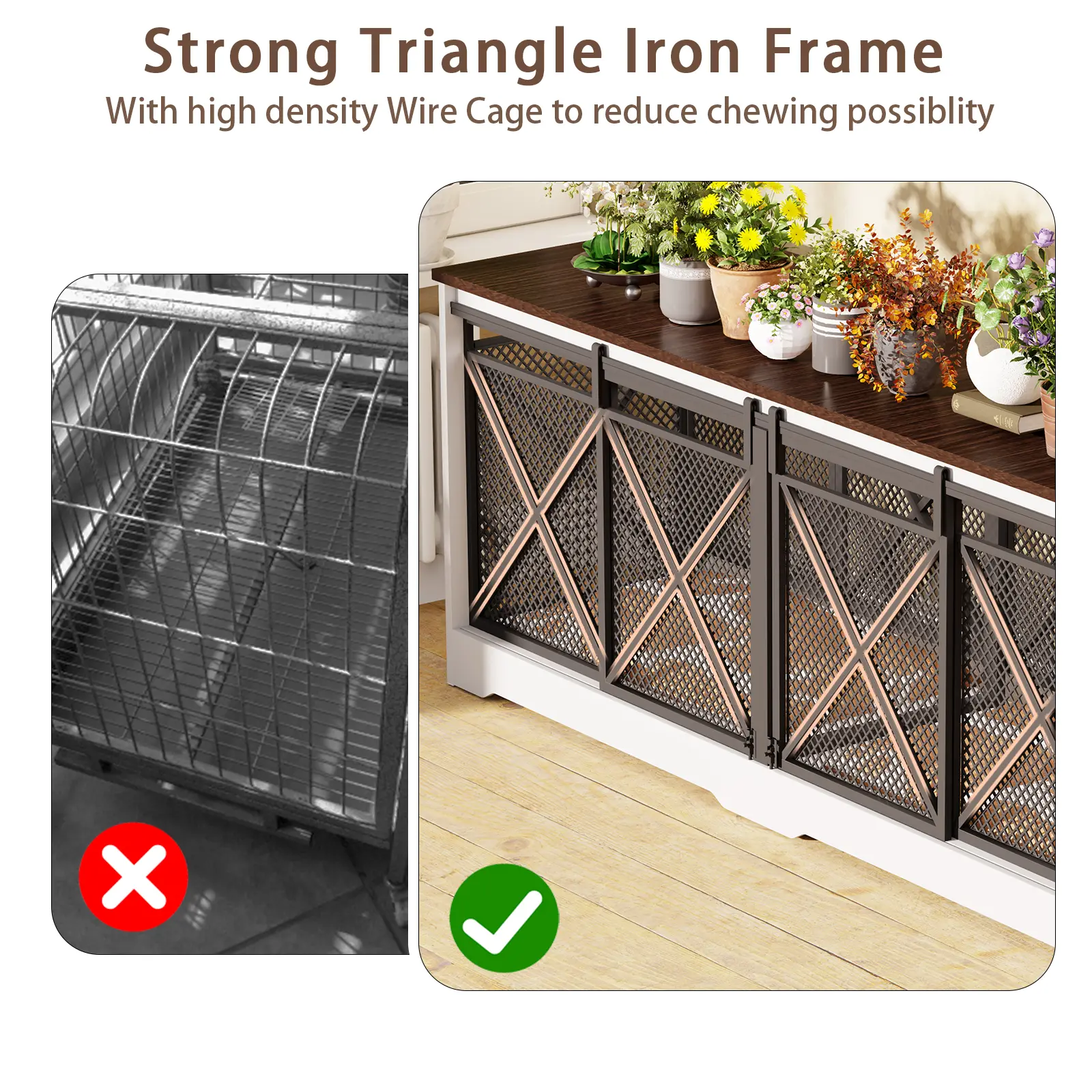 【Sturdy & Chew-Resistant】Made of heavy-duty metal and quality wood with a safe coating. Reinforced structure is durable, chew-resistant, and easy to clean. Raised wooden base protects paws.
