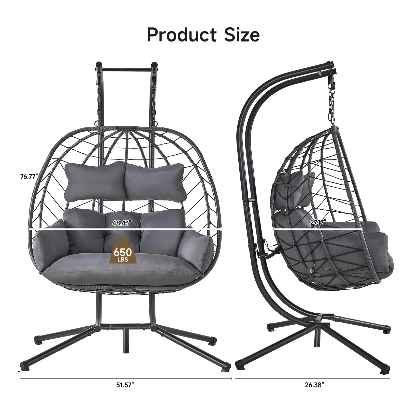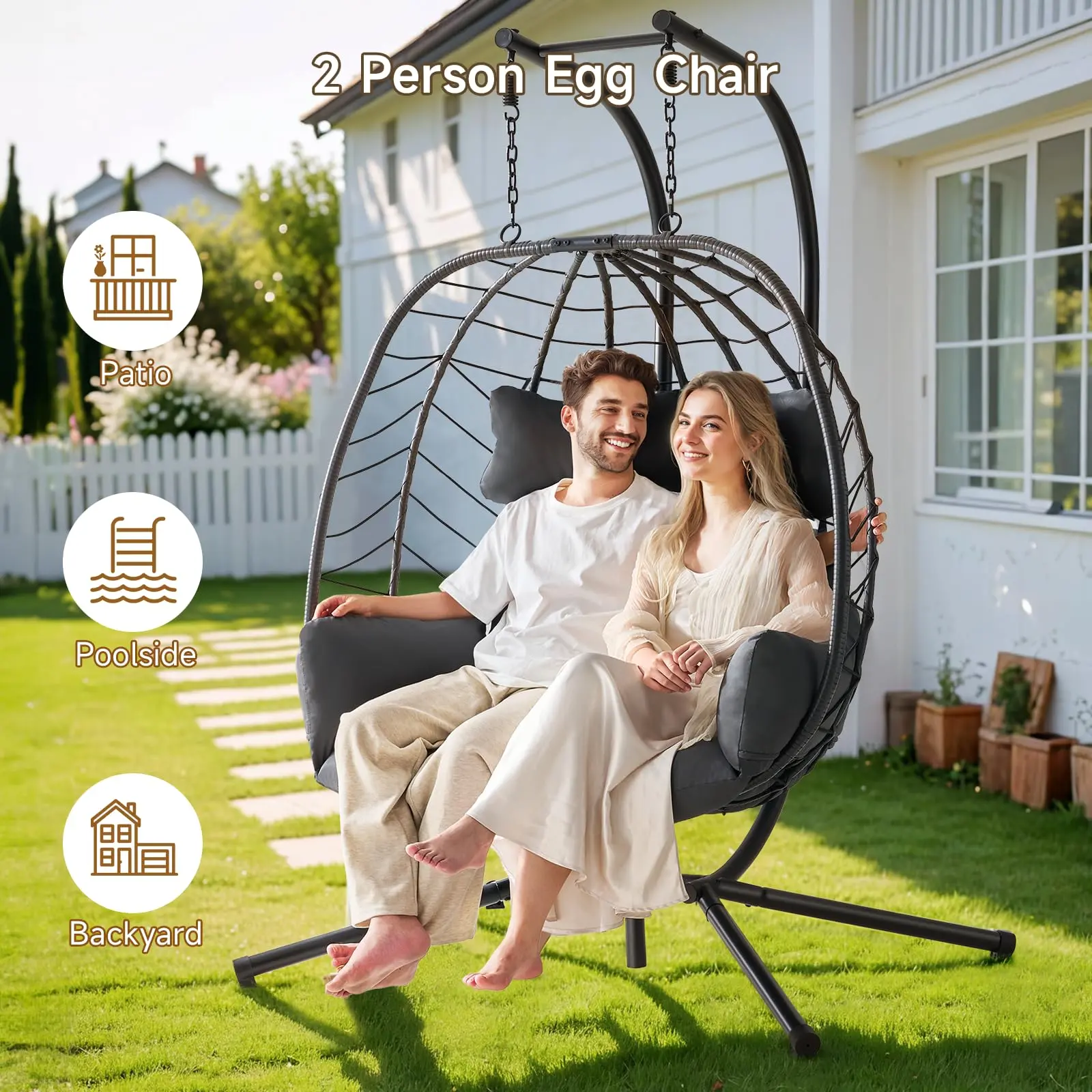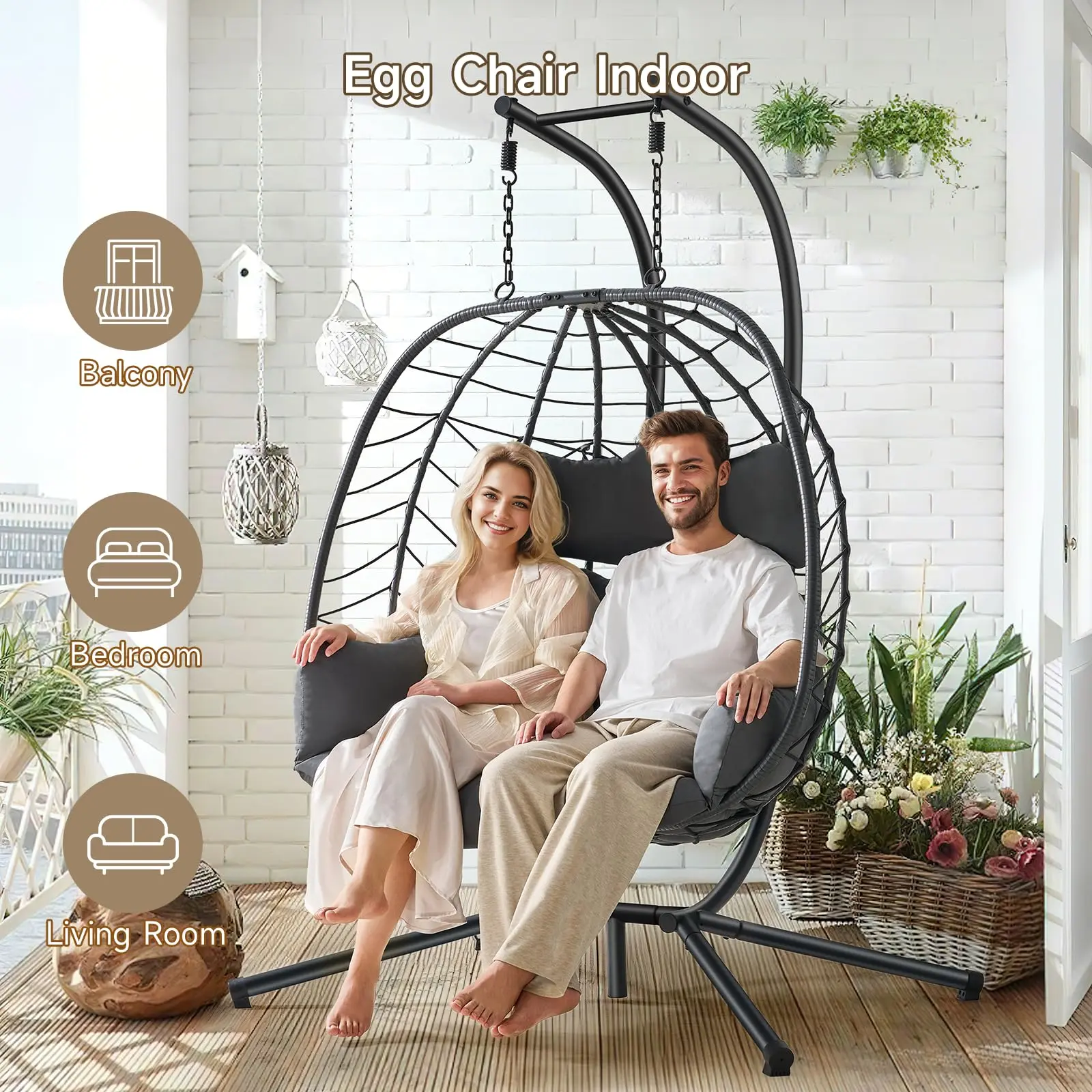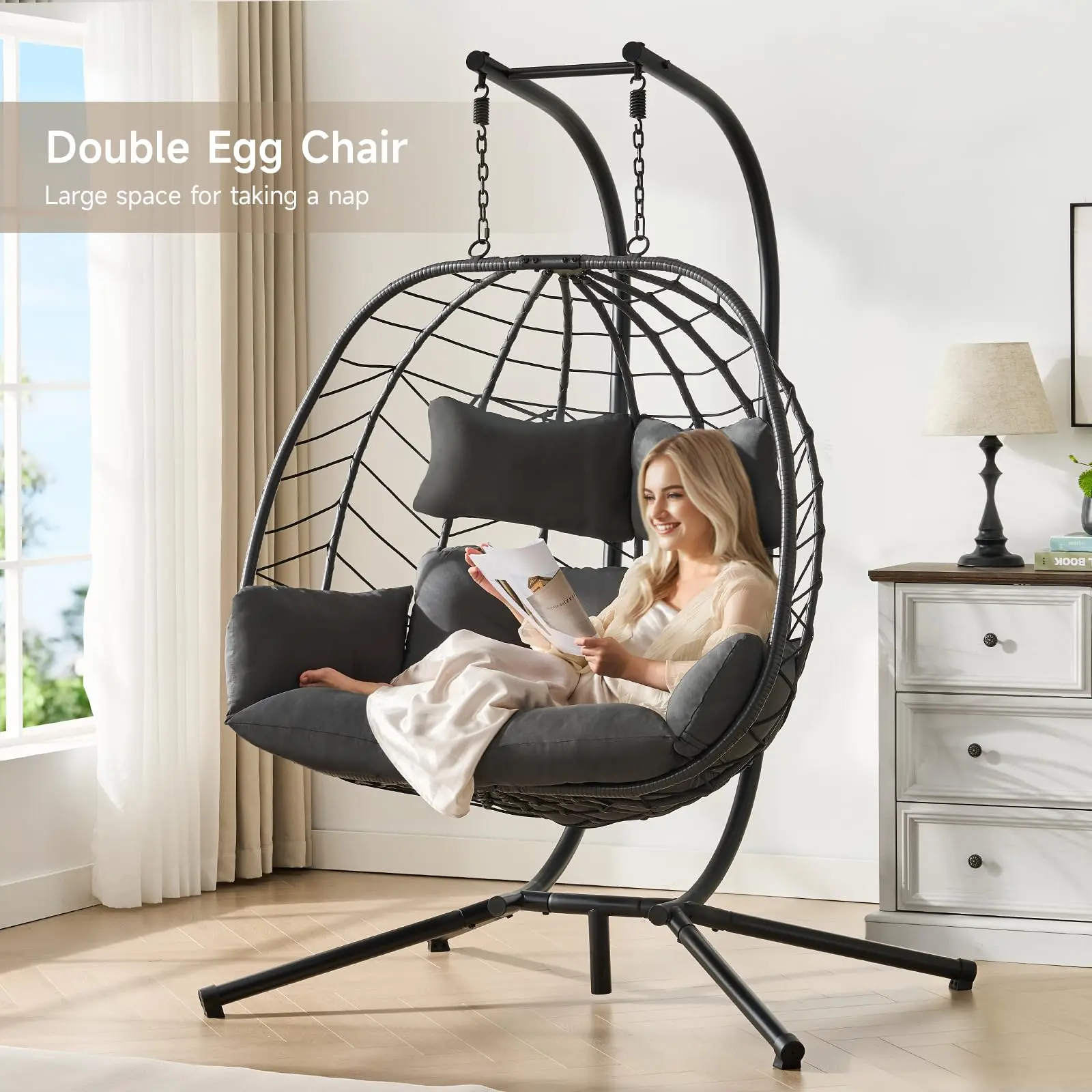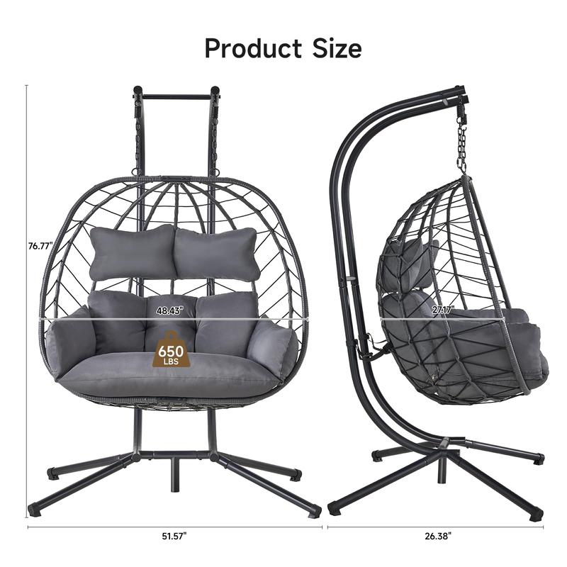 ·Double Seats, Ultimate Comfort: Enjoy 48.4 inches wide comfort with your favorite people! The spacious seating of this double egg chair welcomes all your favorite seating positions and is perfect for relaxing chats or quiet moments