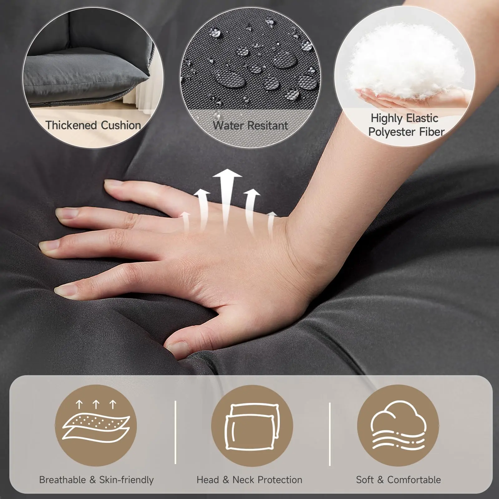 ·Comfortable & Removable Cushion: Relax in ultimate comfort with elastic polyester seat cushions, headrest pillows and side armrests, filled with high-density fiber for lasting softness. And its breathable mesh lining keeps the filling secure, allow easy removal of the outer cover(Note: cushions take 24-48 hours to regain fullness)