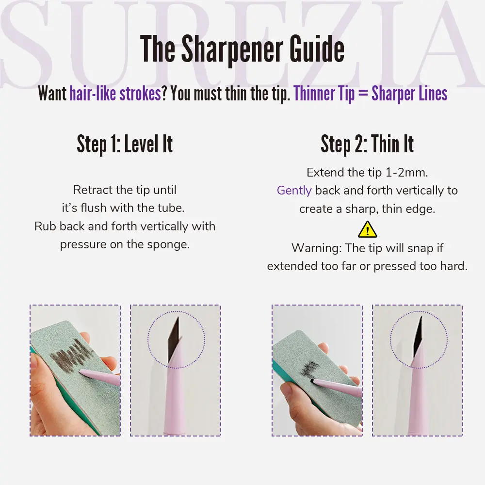SUREZIA Feather Edge Brow Pencil 3-in-1 Kit (Pencil + Refill + Sanding Sponge) Dual-Effect Tip for Two Looks Stays Sharp