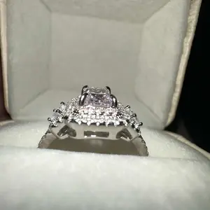 【#323 Princess Aurora】Double-halo 2Carat Synthetic Moissanite/CZ Ring in 925 Sterling Silver For Women
