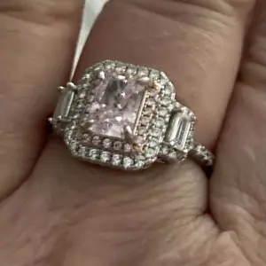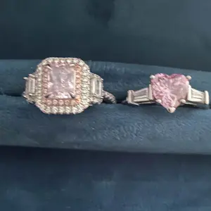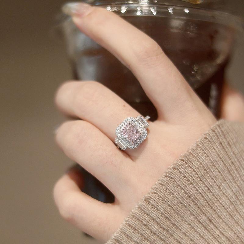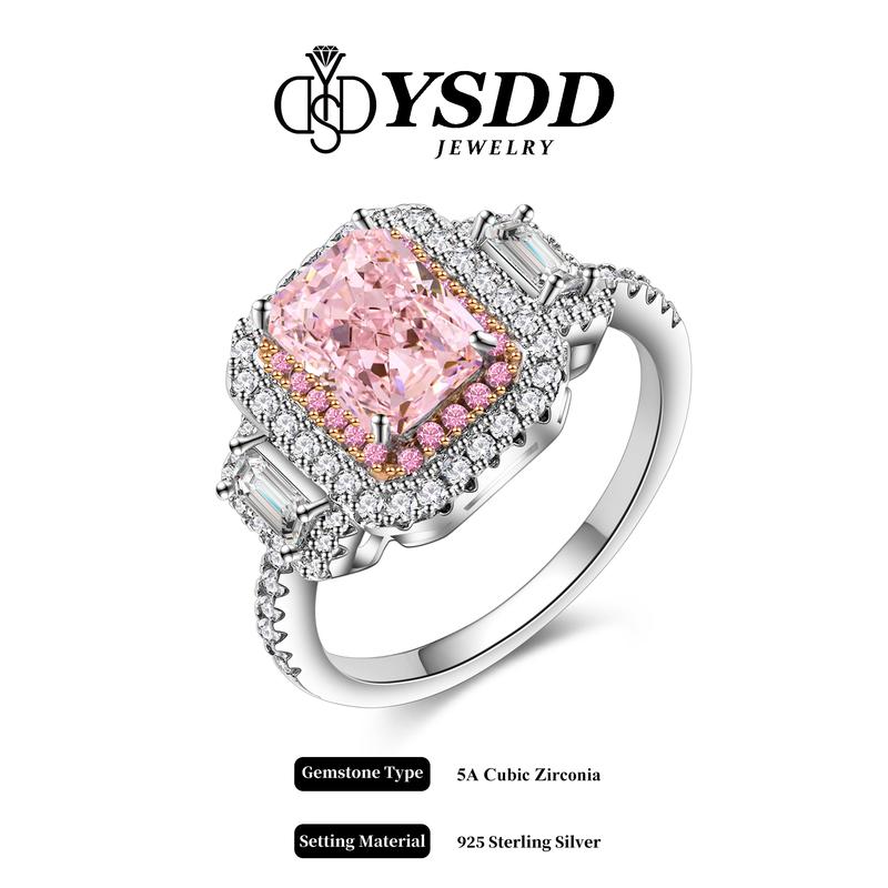 ·Center Stone Options: Choose between 5A cubic zirconia (pink, 2ct) or 2ct emerald cut synthetic moissanite (VVS1-2 clarity, D/E color grade).