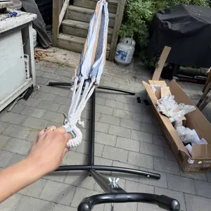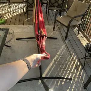 Was so excited to try out my new hammock just to find out that the hammock that comes with the stand isn’t even long enough to reach both hooks.