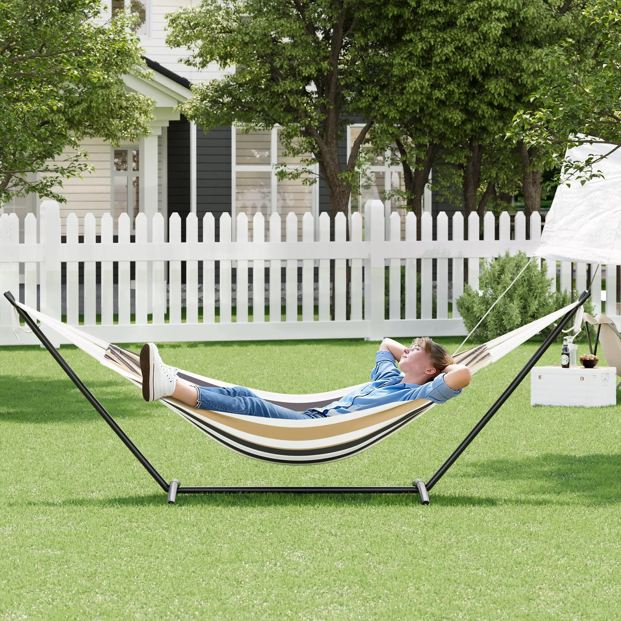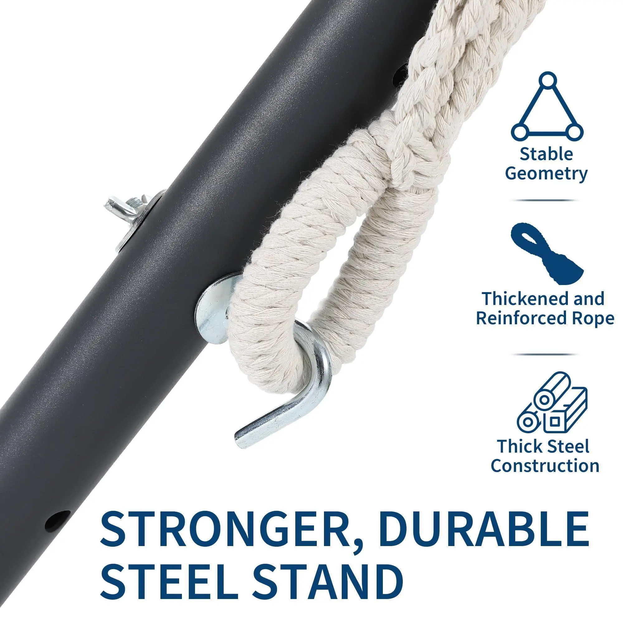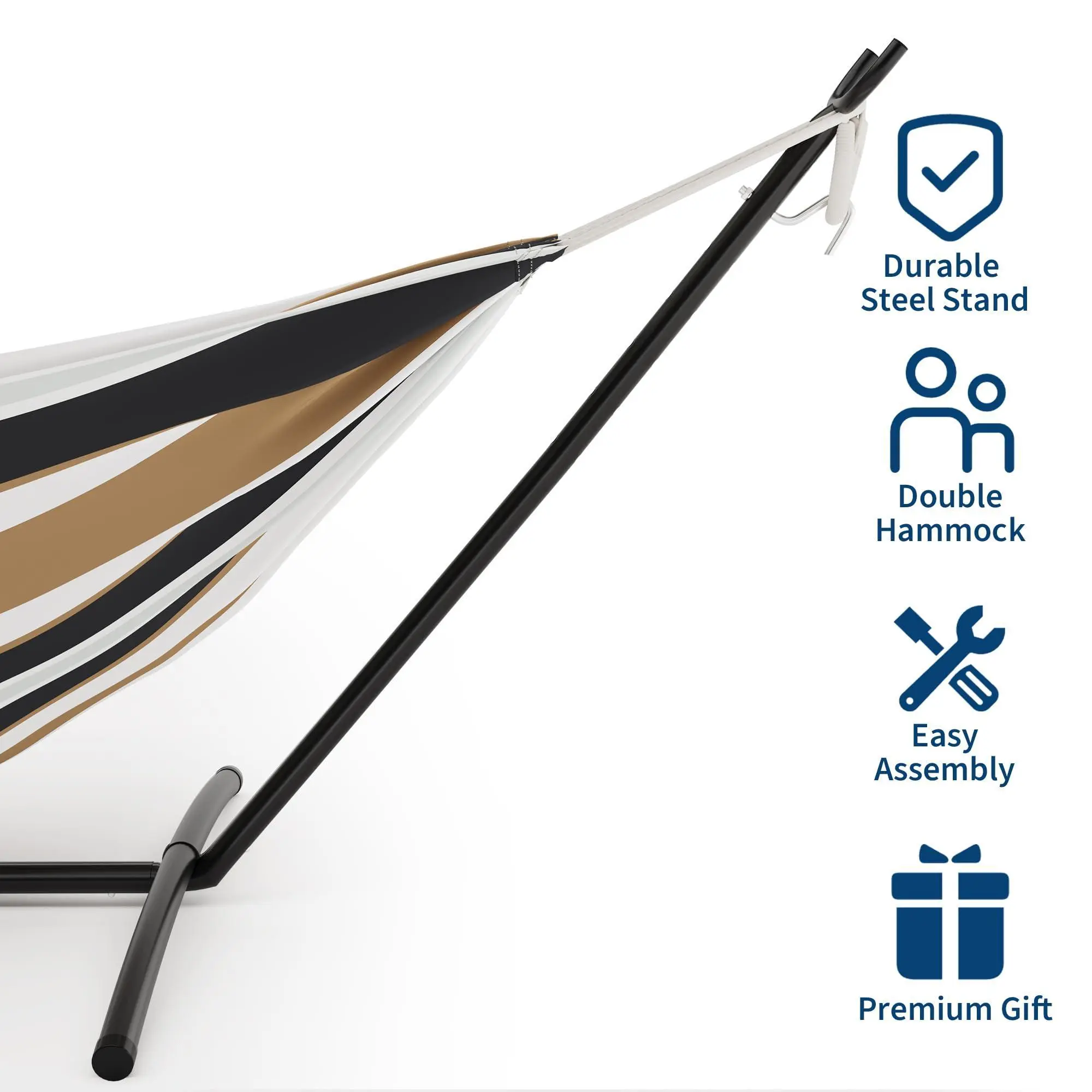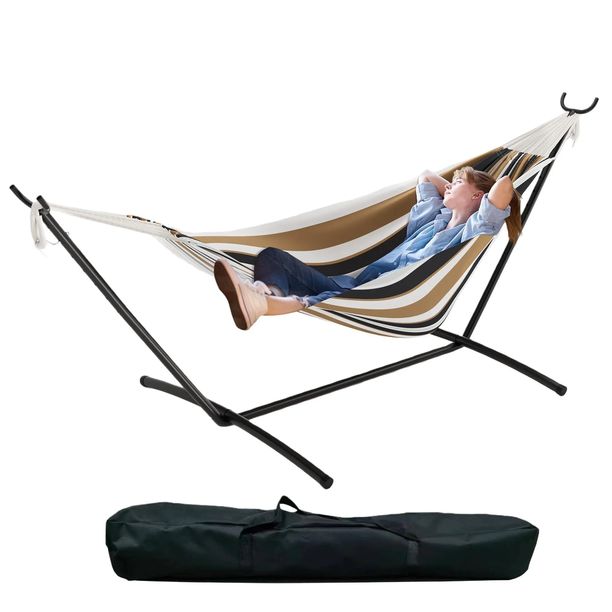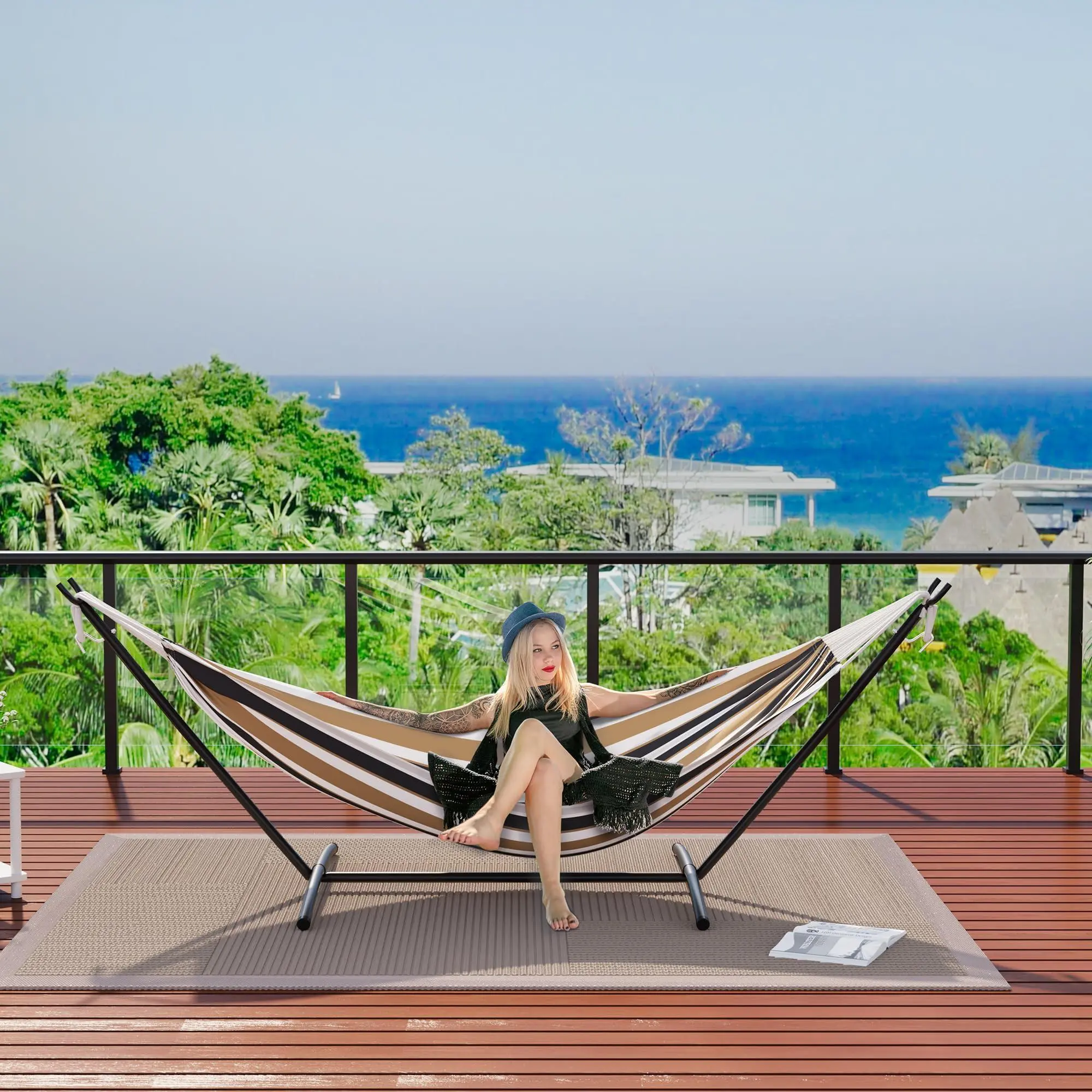 HEAVY-DUTY & BUILT TO LAST: Designed for two! This double hammock features a robust steel stand and reinforced stitching, supporting up to 450 pounds. It’s the perfect, durable spot for couples, families, or anyone seeking superior stability